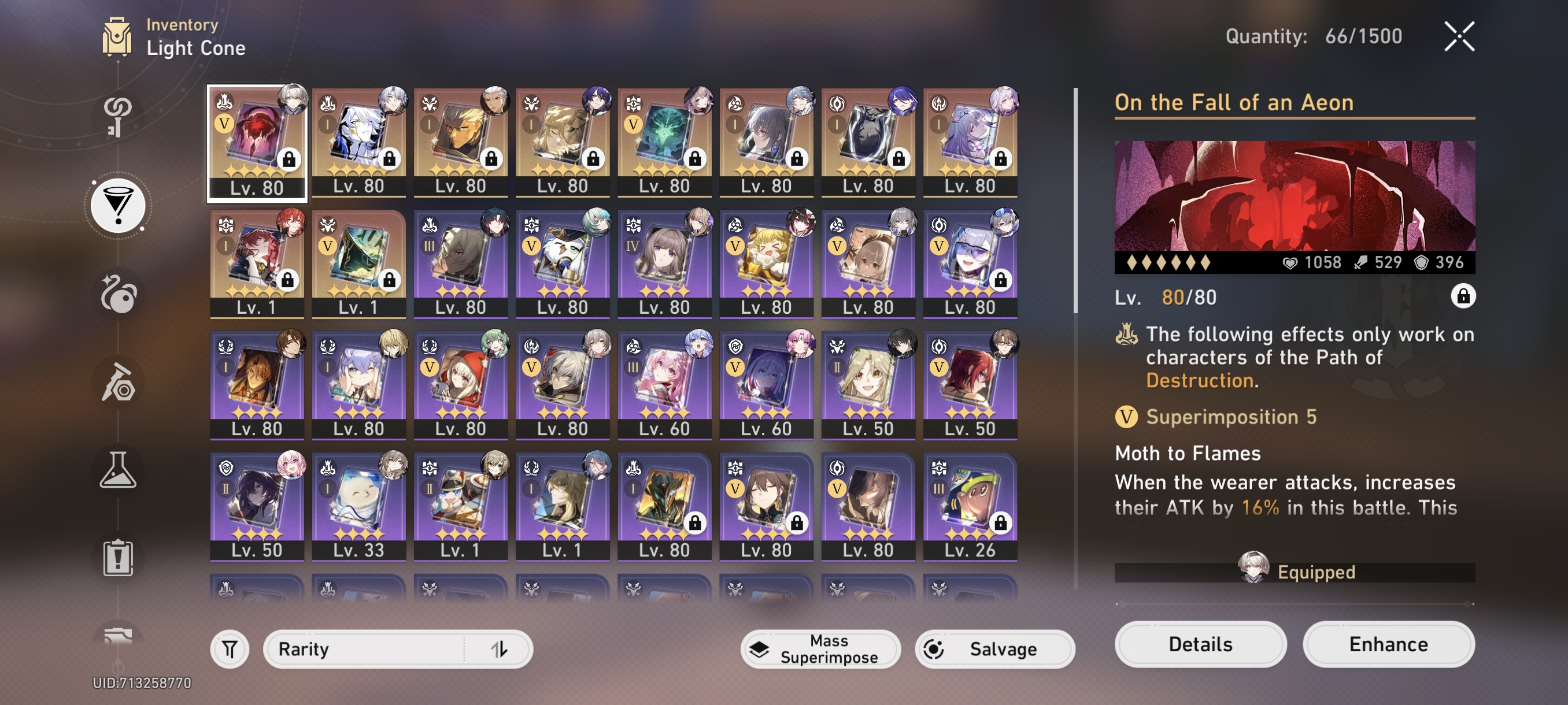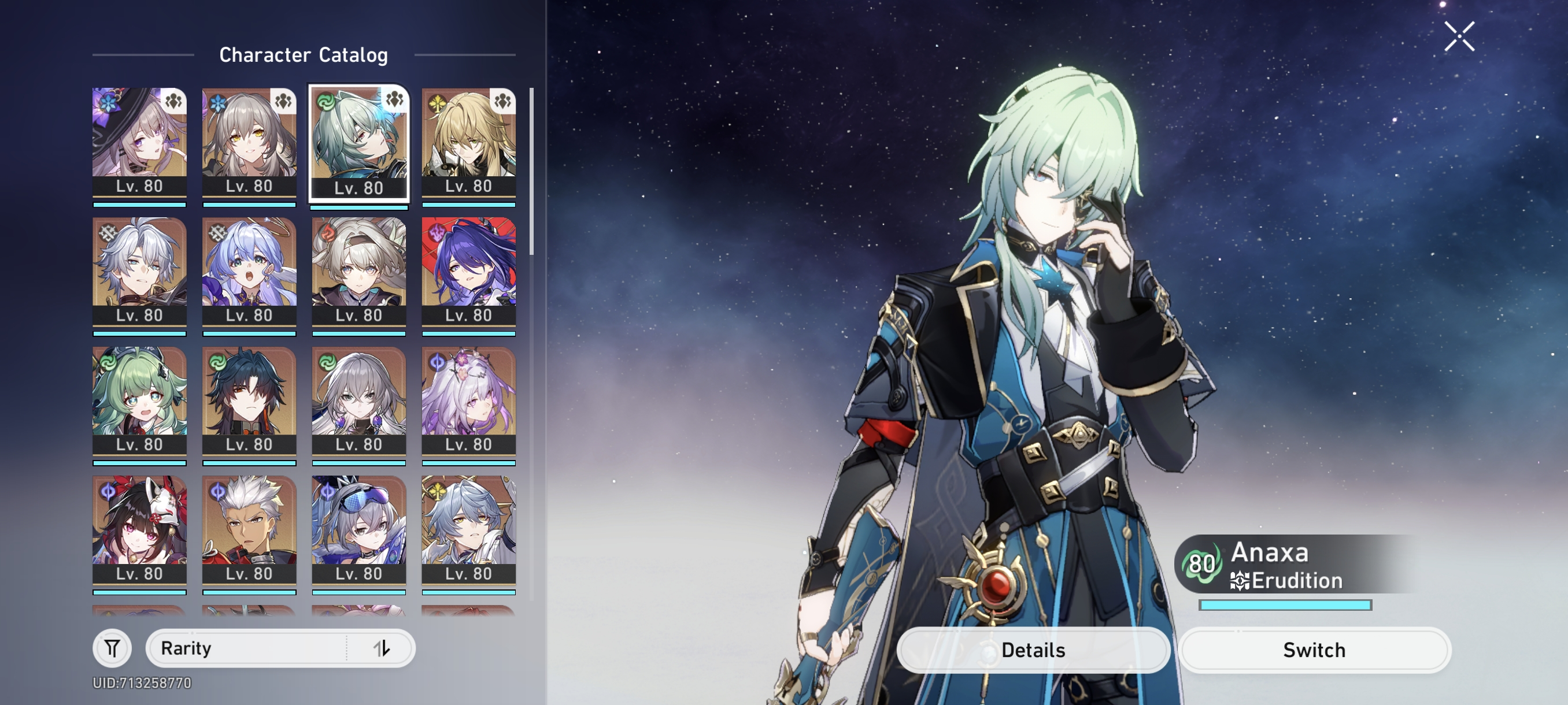 EUW . 70 TL + 10 light cones + 47 characters .24 Legendary Blade . Ruteix . Luocha + Gi 21 AR