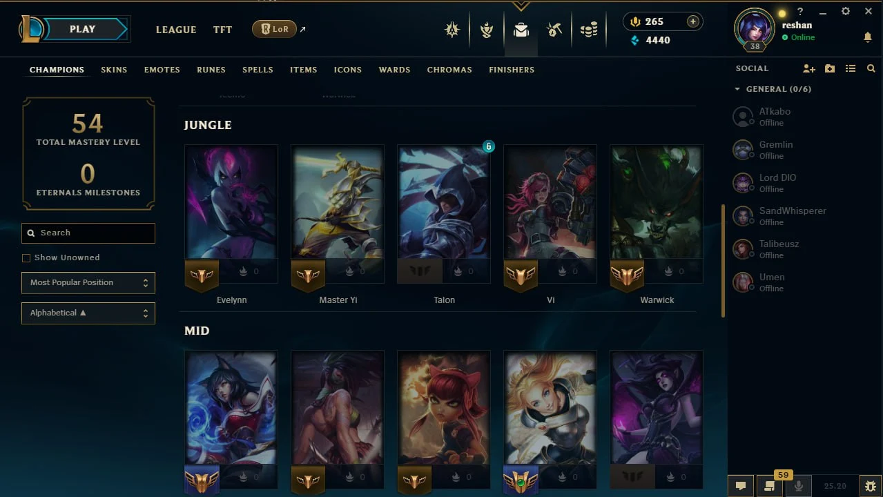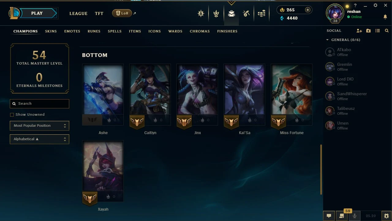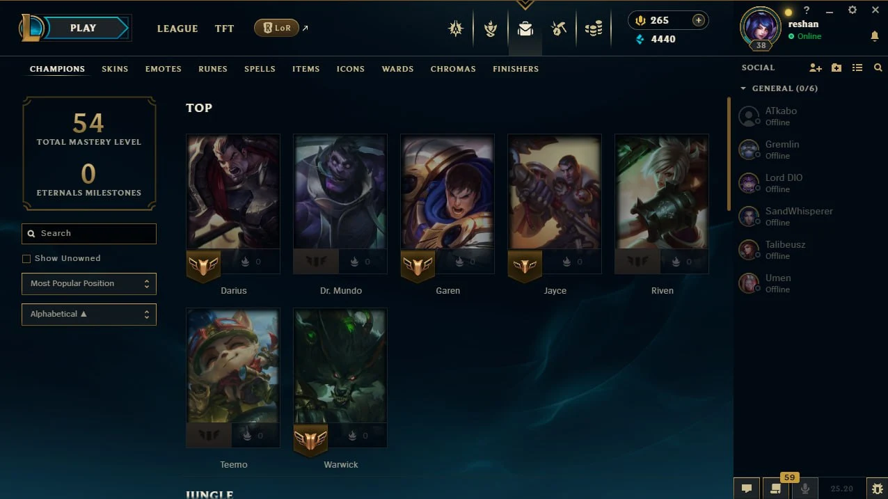 [EUNE] ⸱ LEVEL 38 ⸱ UNRANKED ⸱ 6 SKINS [ 4440 BE , 265 RP ] ⸱ 23 CHAMP
