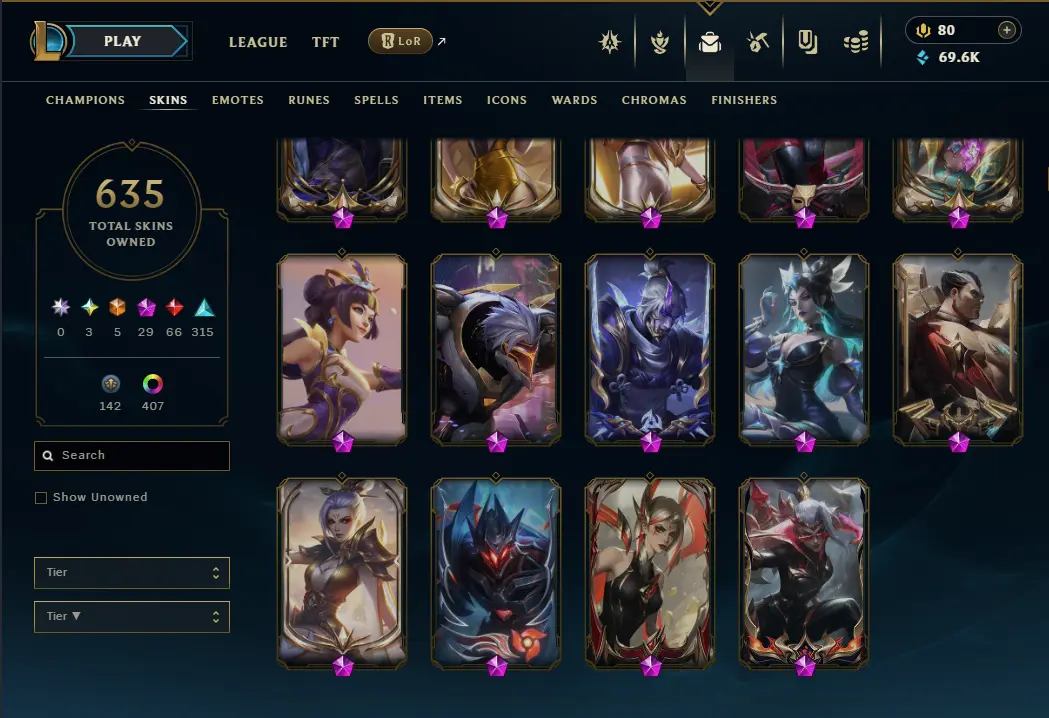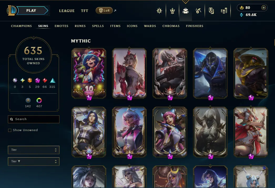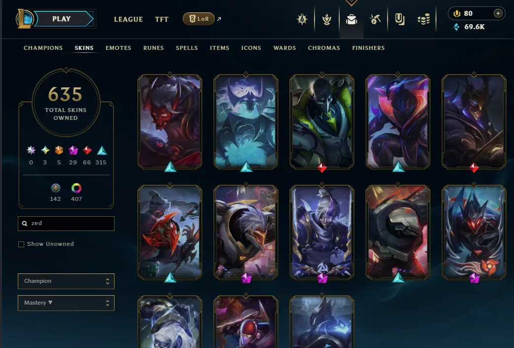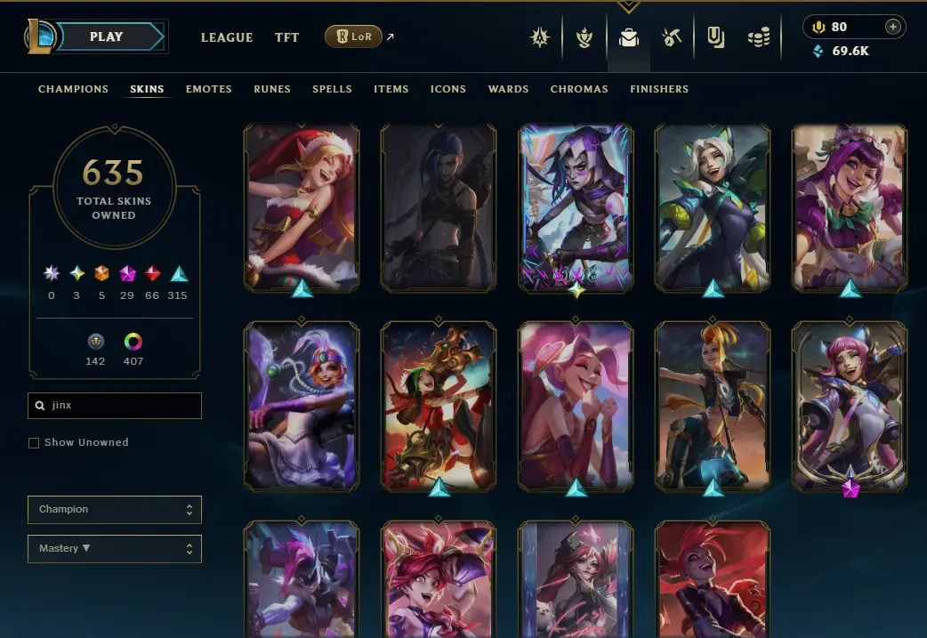 [EUW] 635 skins ~ Arcane Fractured Jinx + Radiant Serpent Sett + Spirit Blossom Morgana + Quantum Galaxy Slayer Zed + Divine God-King Darius + Risen Legend LeBlanc&Vayne+ Tft Loot