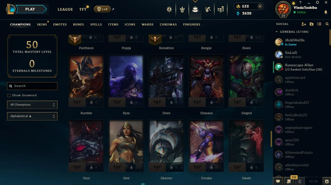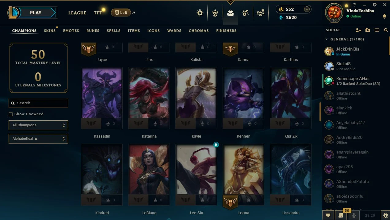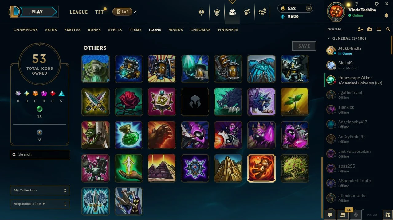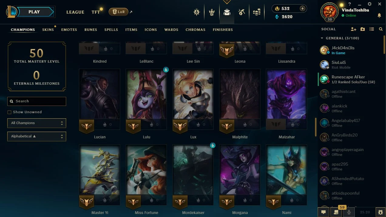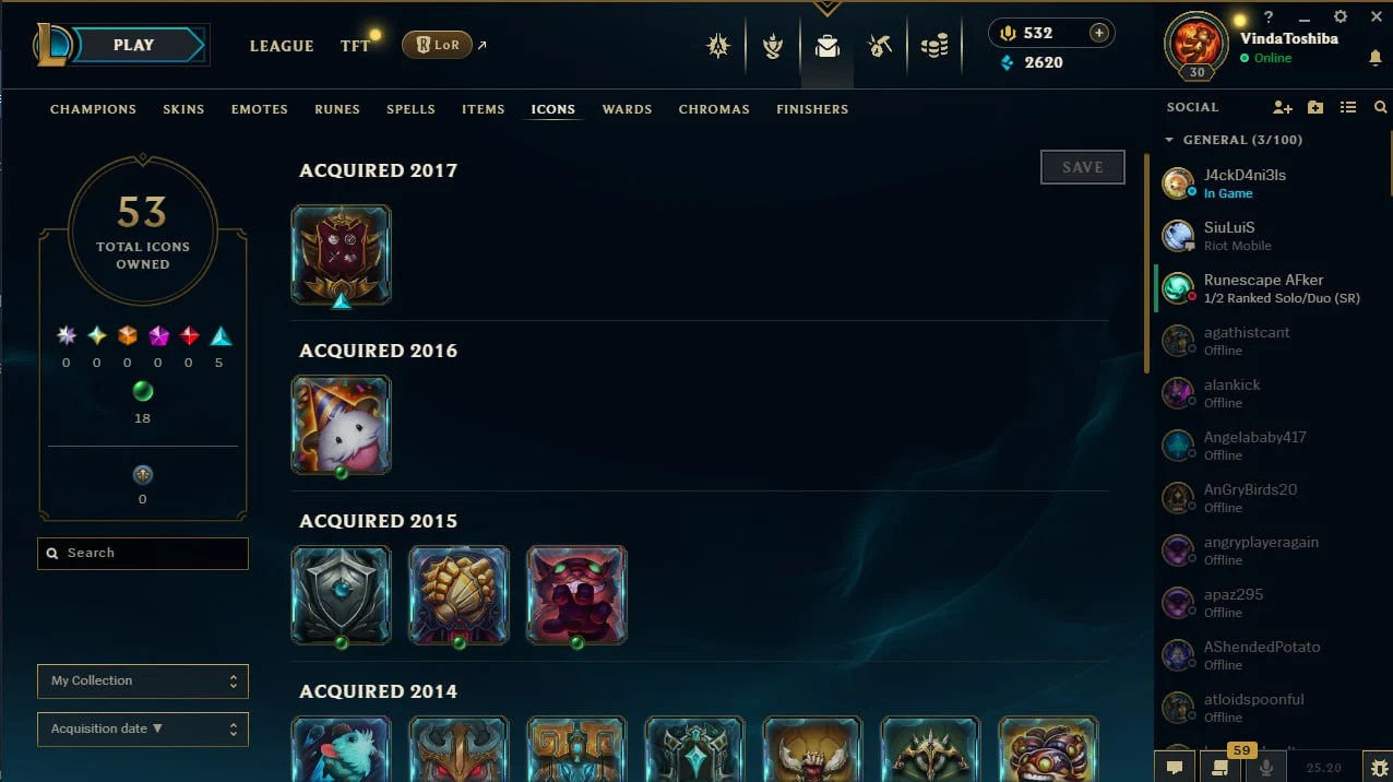 [NA] ⸱ LEVEL 30 ⸱ UNRANKED ⸱ 8 SKINS [ 2620 BE , 532 RP ] ⸱ 79 CHAMP
