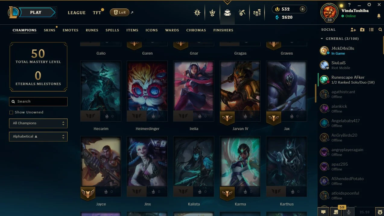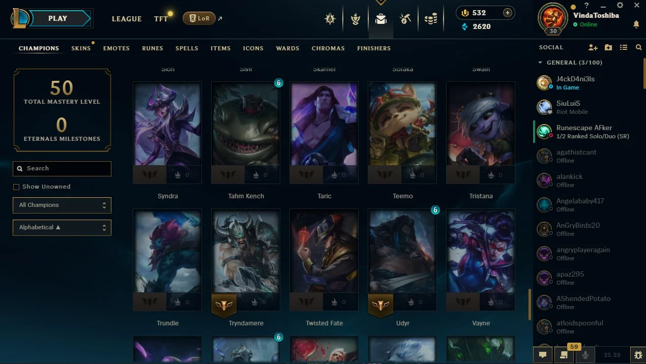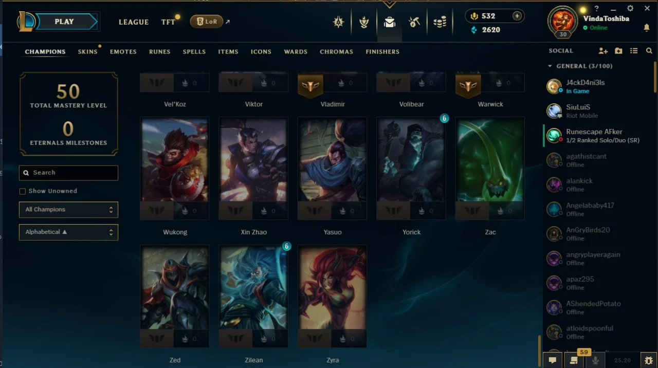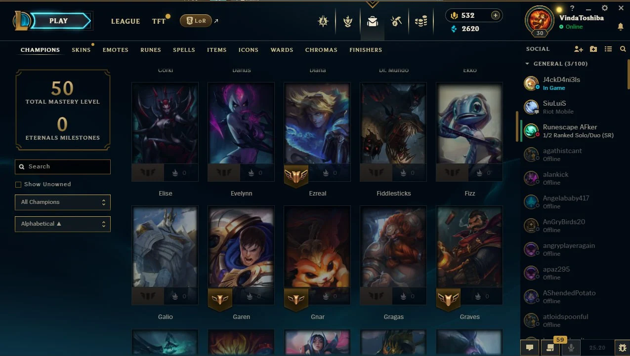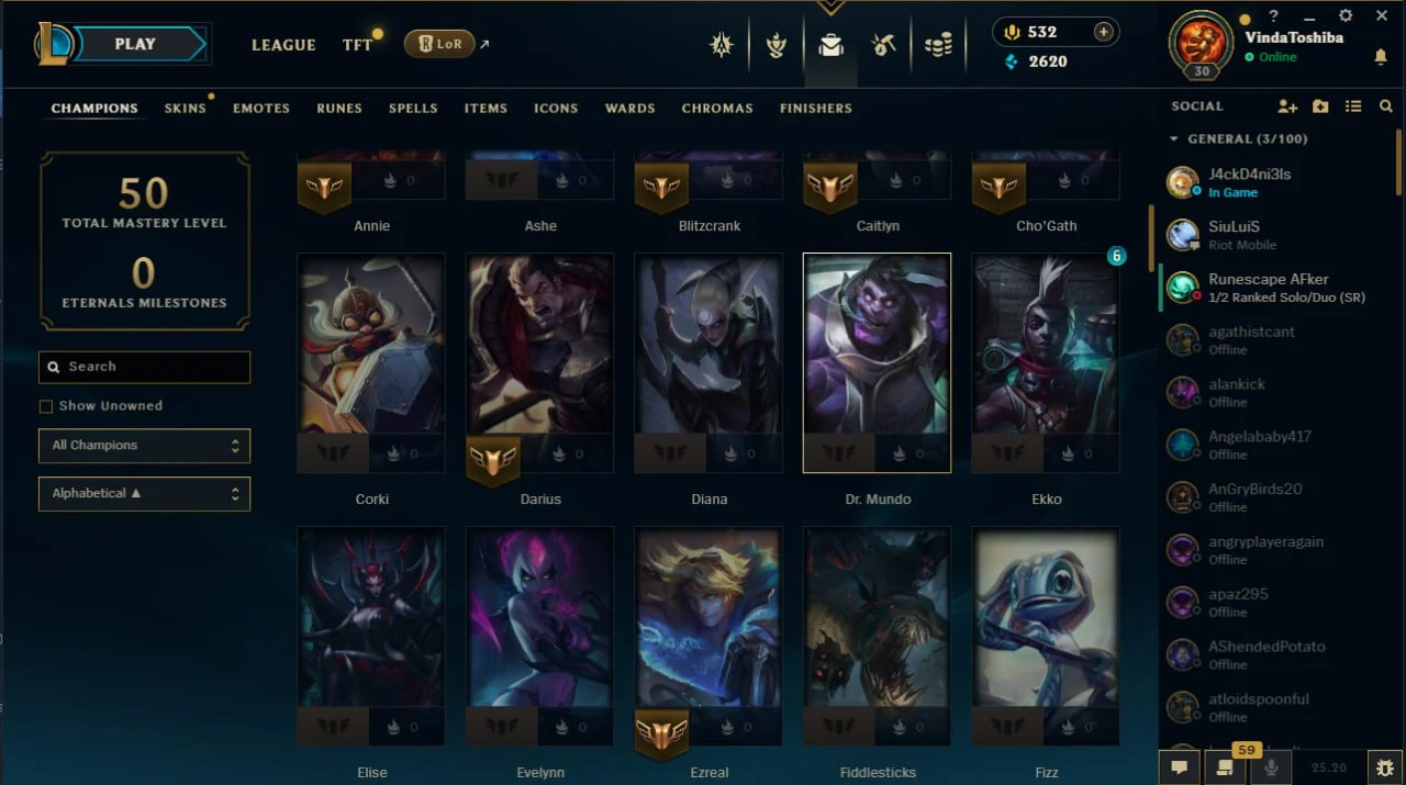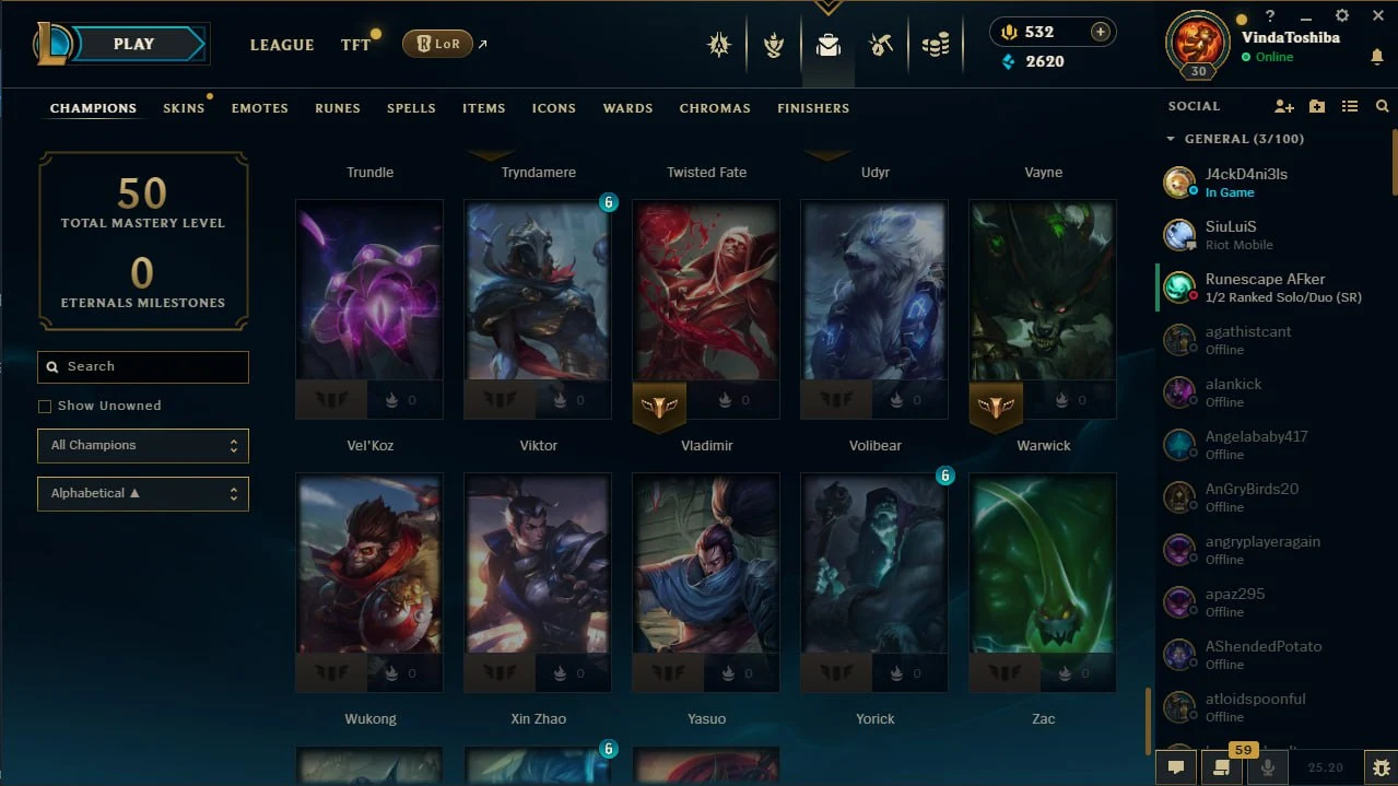 [NA] ⸱ LEVEL 30 ⸱ UNRANKED ⸱ 8 SKINS [ 2620 BE , 532 RP ] ⸱ 79 CHAMP