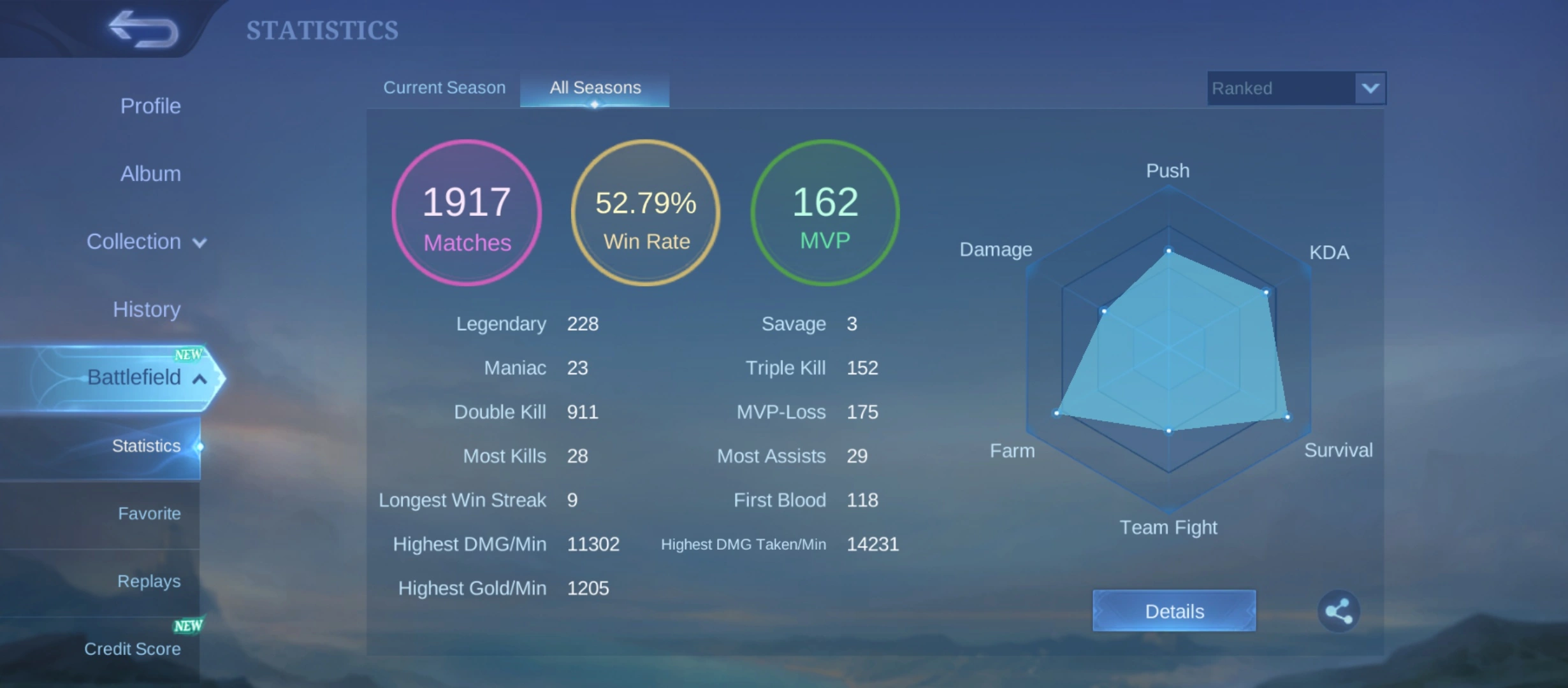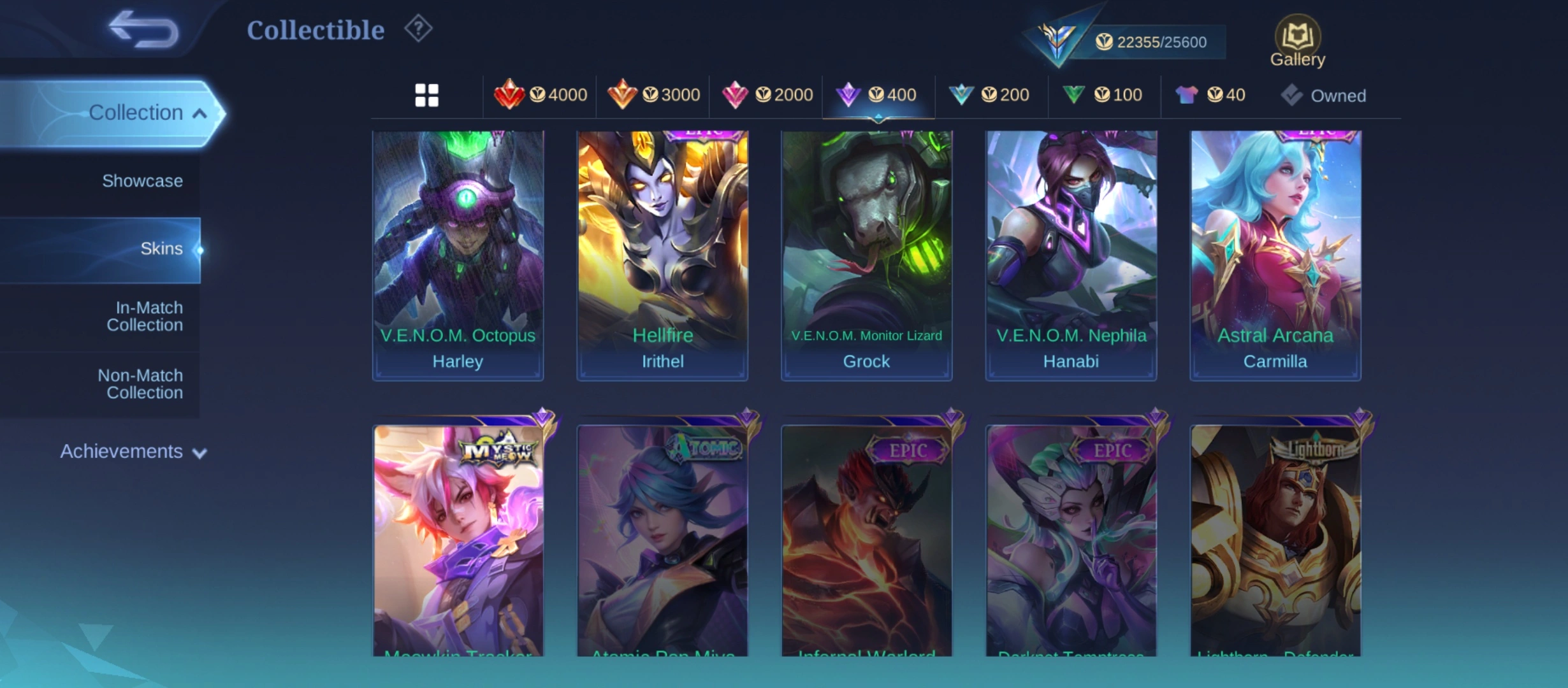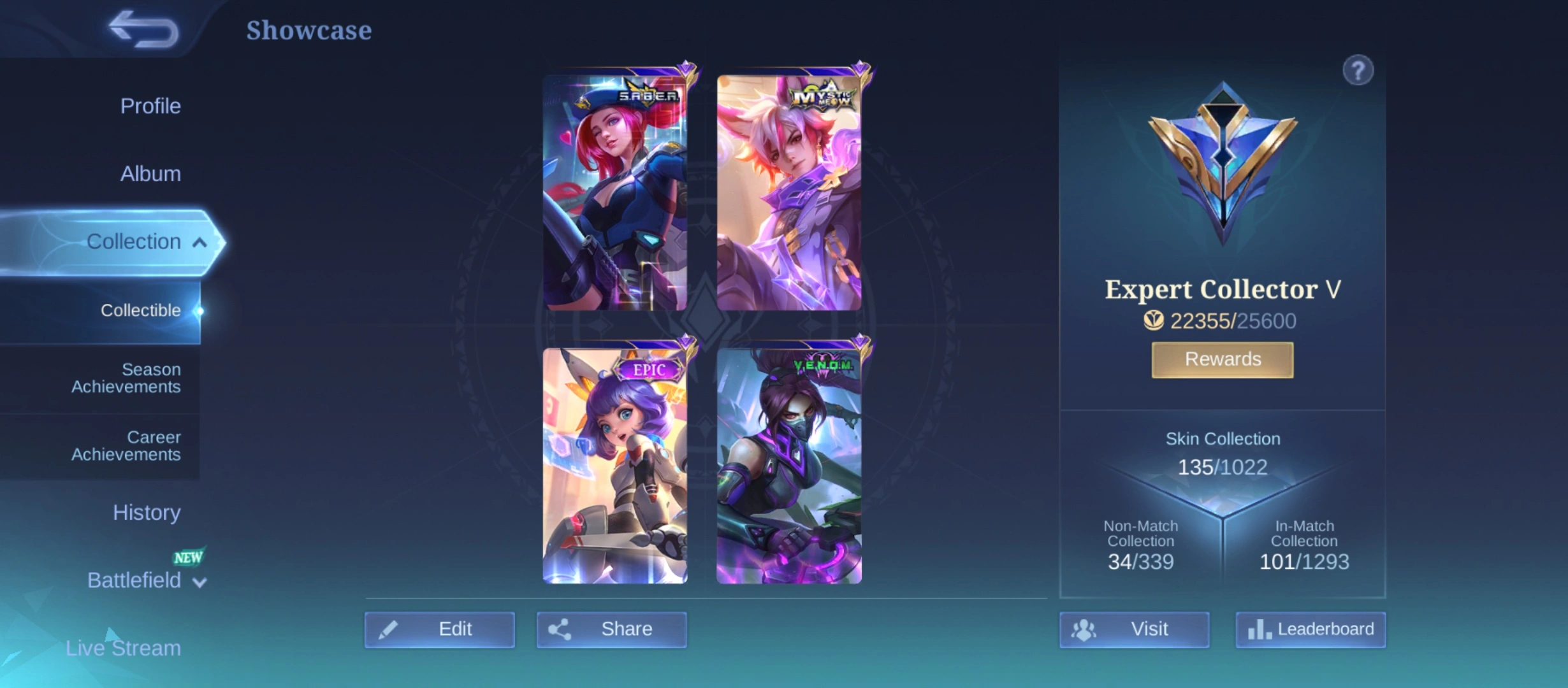 GG919|Lvl 55|EXPERT CC 4|ALL EMBLEM MAX|52% WR|135 SKIN|84 HEROES|3 EPIC(NANA,IRITHEL,CARMILLA)|JULIAN MEOWKIN|3 VENOM|LEGEND 4