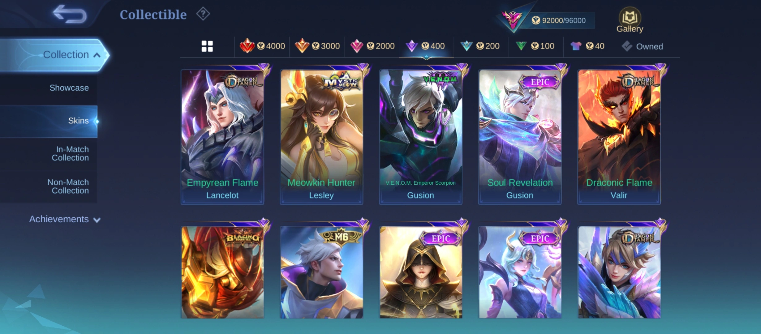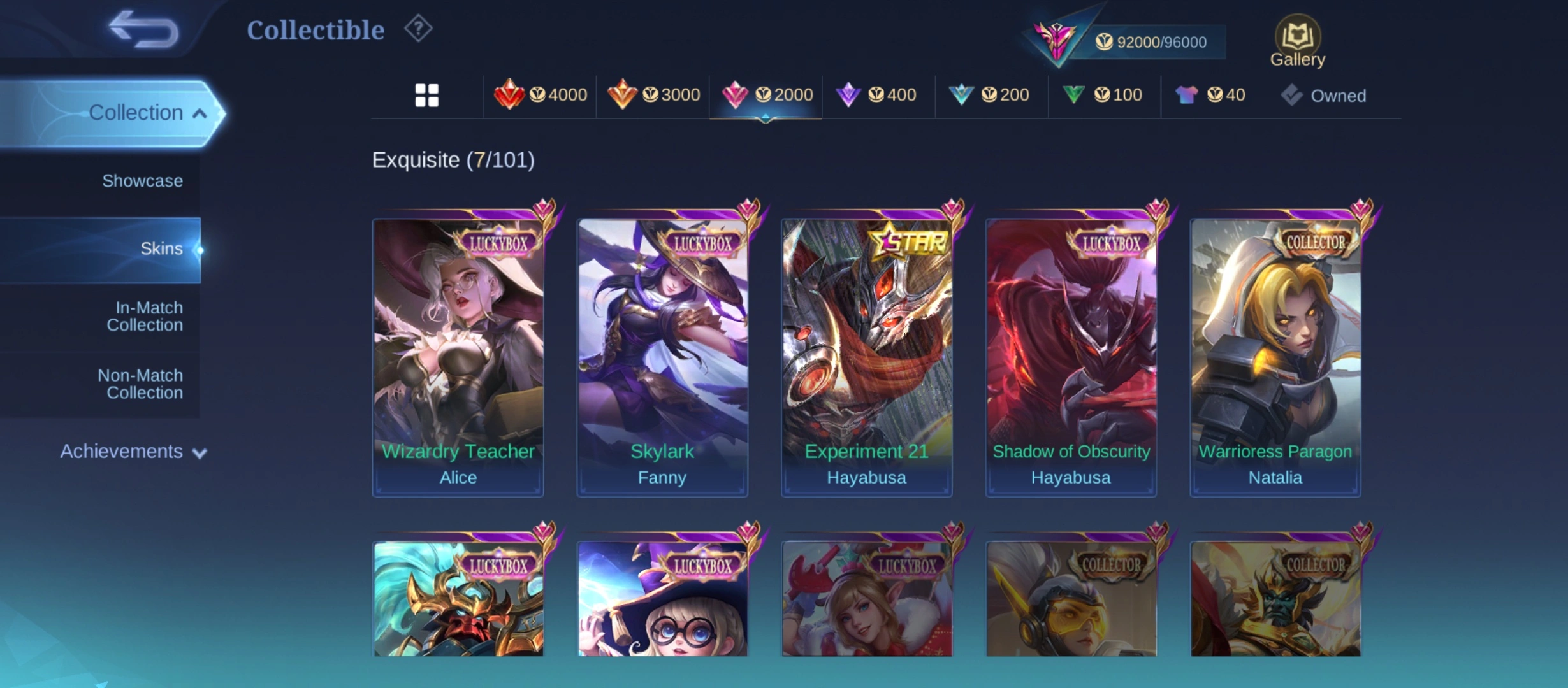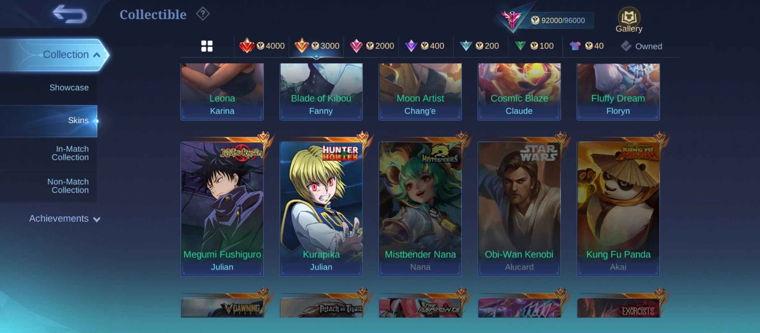GG928|Lvl 63|EXALTED CC 5|ALL EMBLEM MAX|249 SKIN|ALUCARD LEGEND|FANNY ASPIRANTS|MEGUMI JULIAN JJK|KURAPIKA JULIAN JJK|2 SANRIO(CHANG'E,FLORYN)|5 LUCKYBOX|MYTHIC