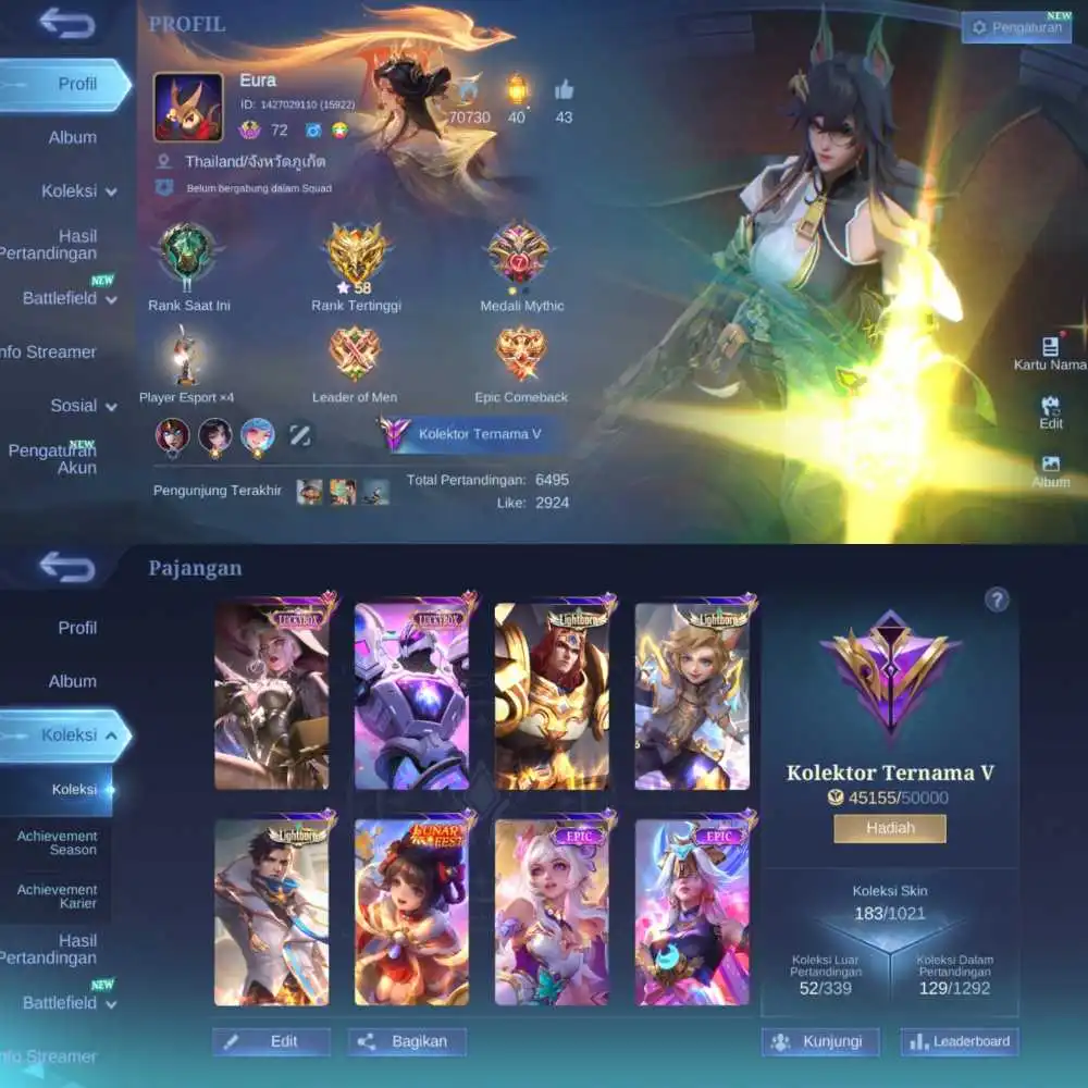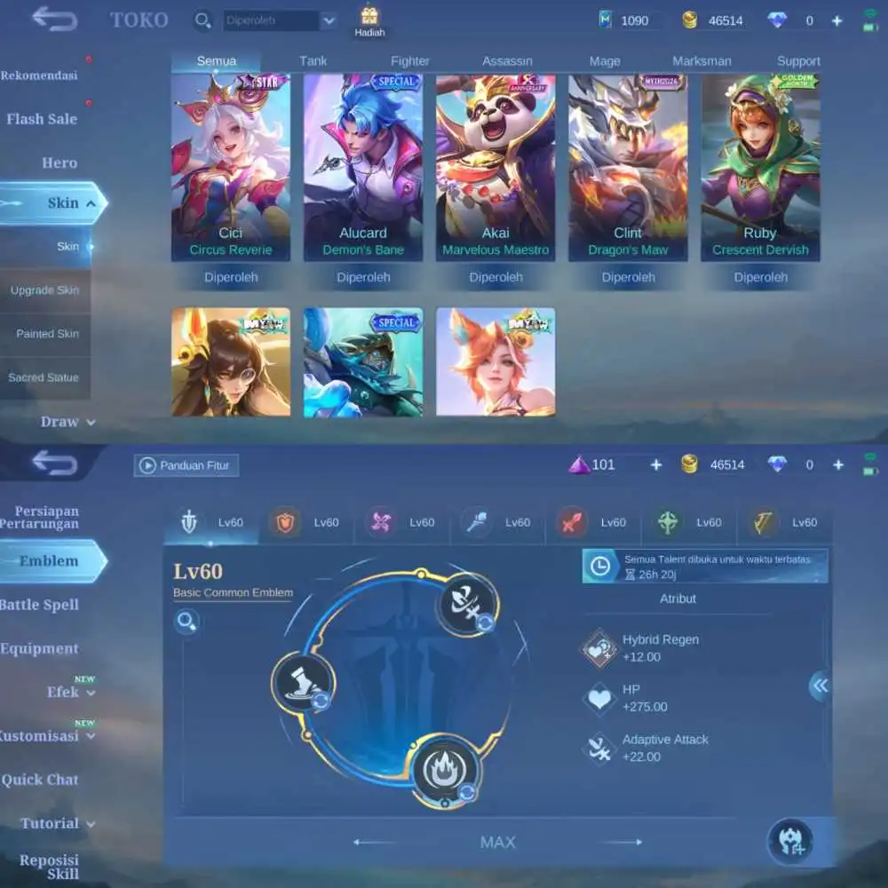 IT 741🔥MOBILE LEGEND🔥EMBLEM ALL MAX🍀2 LUCKY BOX🍀11 EPIC🍀2 MYSTIC🍀RANK:EPIC🍀HERO 99🍀SKIN 183(SAFE ACCOUNT)