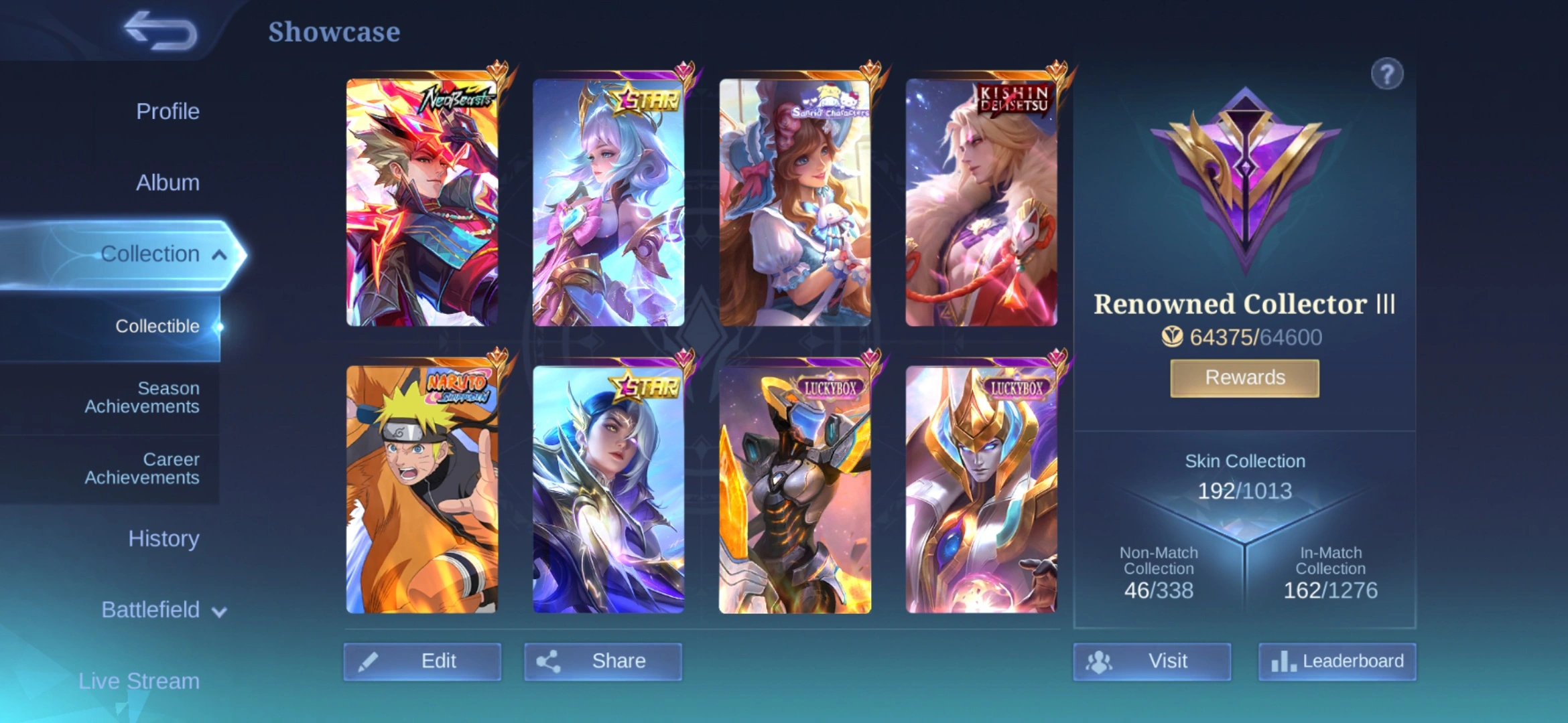 MB831|LV55|HERO 100|SKIN 192|RENOWNED COLLECTOR 3|WDP 500 DIAMOND|KARINA KOF|LING NEOBEAST|LANCELOT KISHIN DENSETSU|LUKAS NARUTO|FLORYN SANRIO|LESLEY, ANGELA ANNUAL|ESTES LUCKYBOX|IRITHEL LUCKYBOX|SELENA ZODIAC|12 EPIC
