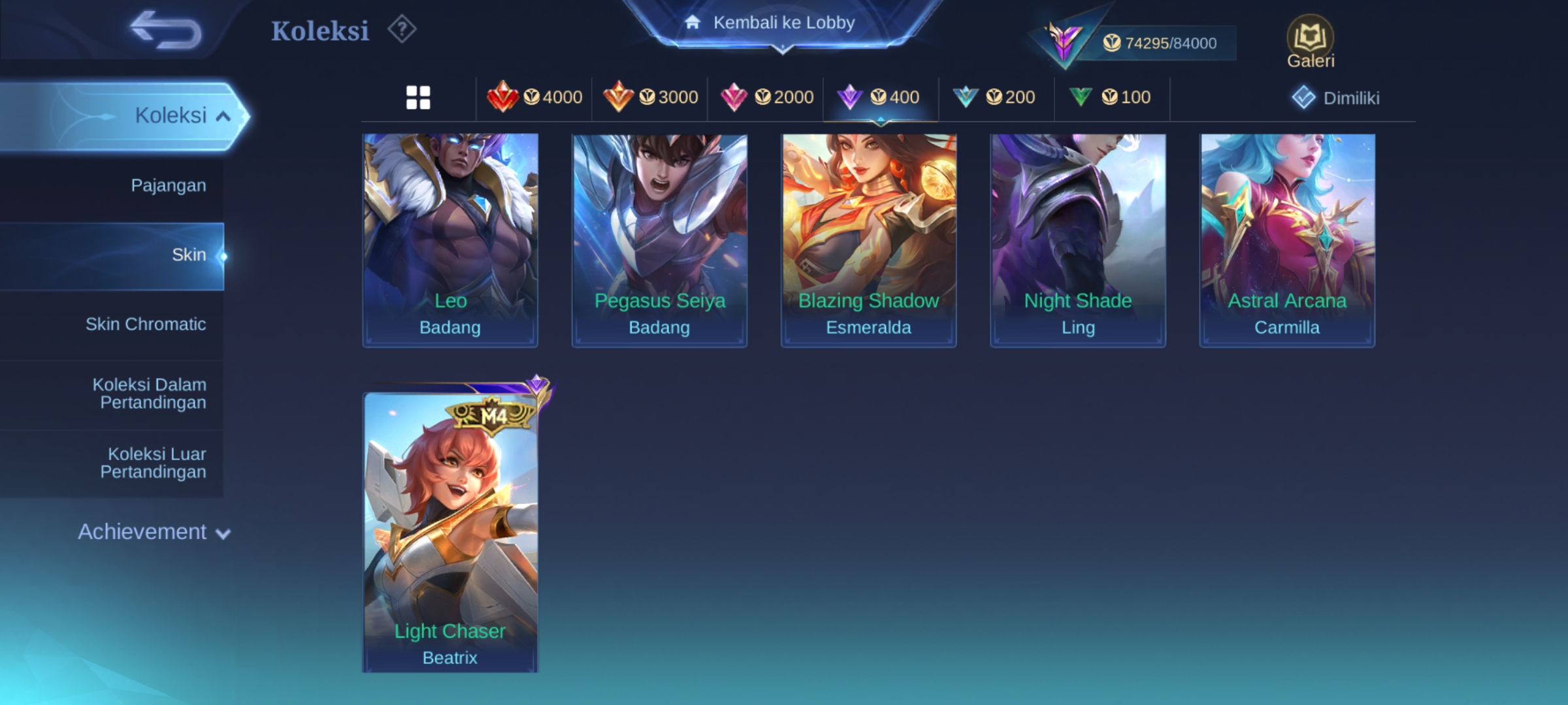 ![ML-218 Skins 233 [ Legend Lunox ] Aspirants Layla / Starlight Lesley / KOF Karina / Collector Natalia / Luckybox Uranus x Change](https://cdn.gameboost.com/games/mobile-legends/tiers/sm/grandmaster.webp)