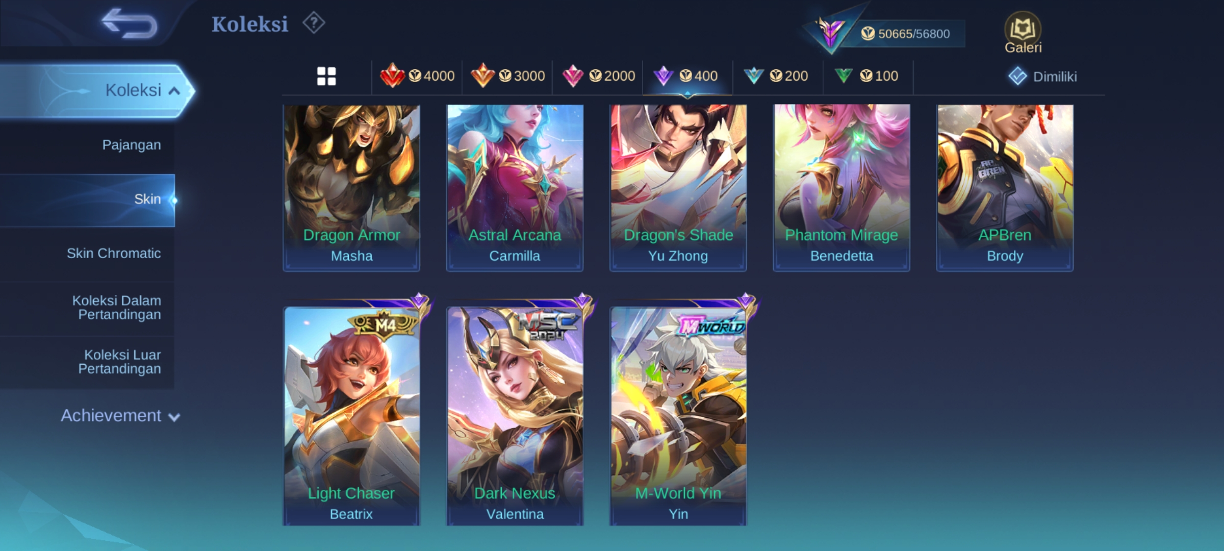 ML-368 Skins 182 [ Legend Lunox ] Neobeast Brody / Prime Yuzhong / Anual Lesley / Convenant Lesley x Benedetta / Mworld Yin