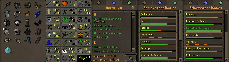Main | 1900+Total | 321 QP | 86 Atk/88 Str/86 Def/93 Rng/91 Mgc | Avernic, E Void, Abyssal Tentacle, Quest Cape ⸱ ChicksNOS125
