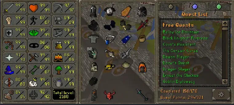 Max Melee Main | 2160+ Total Level | 290+ QPs | 99 Range | 99 Mage | 99 Slayer | Elite Void | Firecape | Rare Pets ⸱ CHICKSFOS020