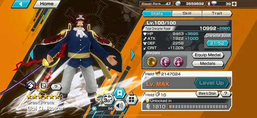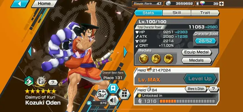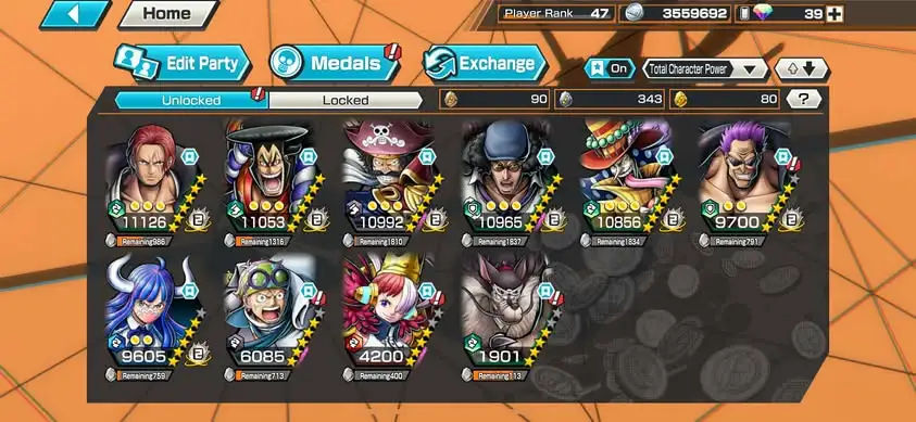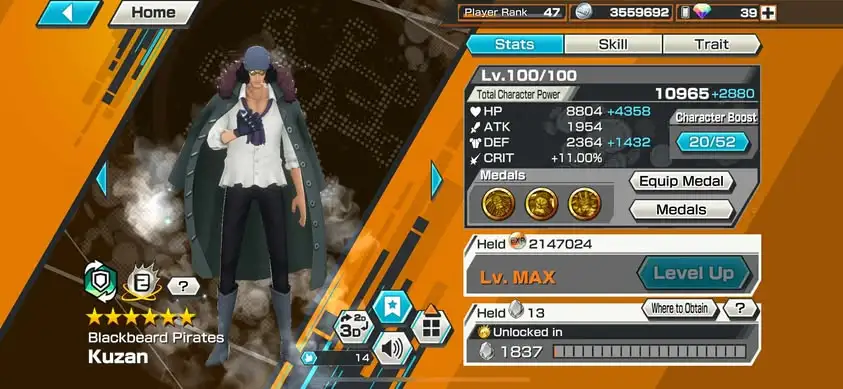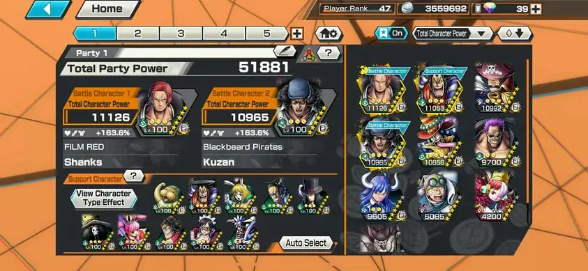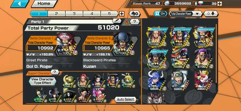 [3307][IOS+ANDROID] 5 EX / 4 MAX / Kuzan + Shanks Red + Oden + Roger Dark + Zephyr , Support 163% , Good Medal