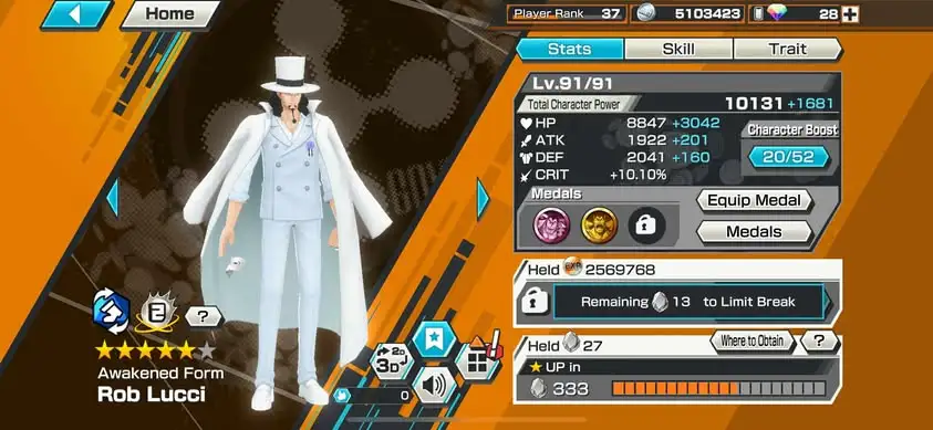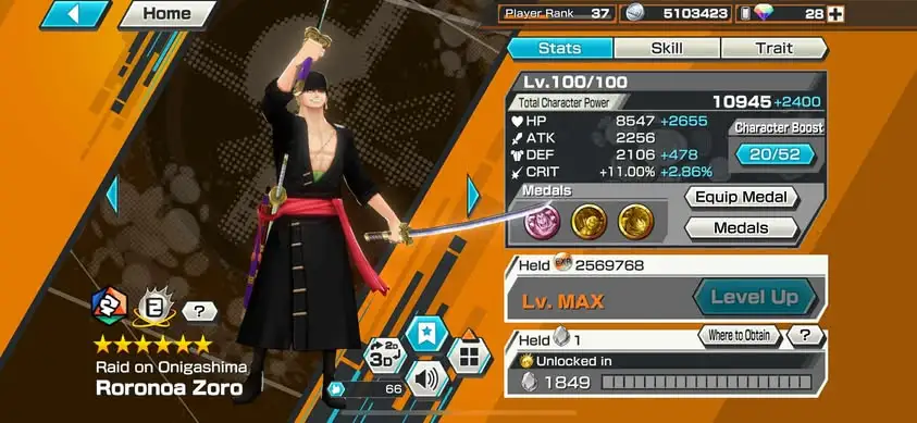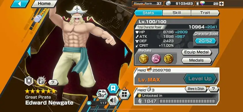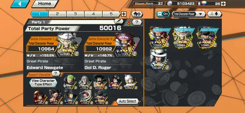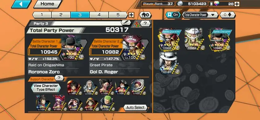 [3314][IOS+ANDROID] 4 EX / Lucci + Zoro + Whitebeard + Roger Dark , Support 152% , Good Medal