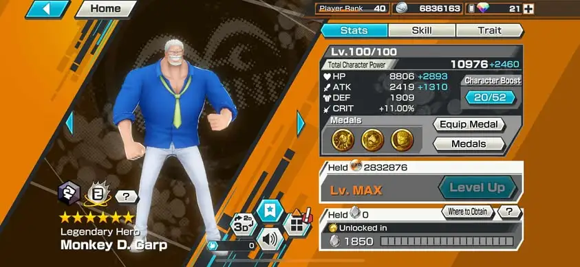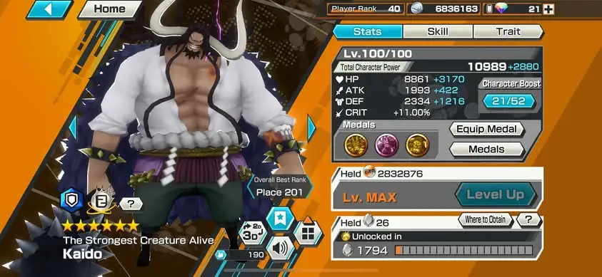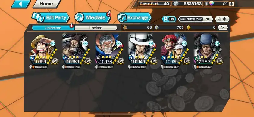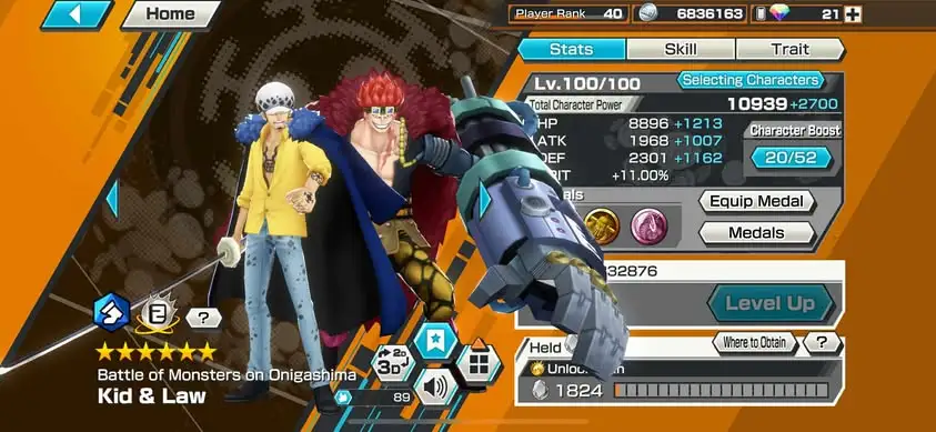 [3323][IOS+ANDROID] 6 EX / 5 MAX : Garp + Kaido + Lucci + Kid Law + Kuzan + Luffy Blue , Support 163% , Good Medal