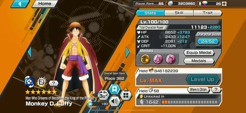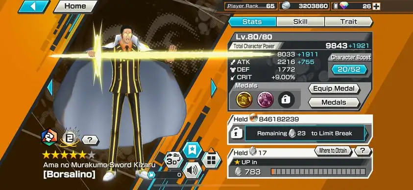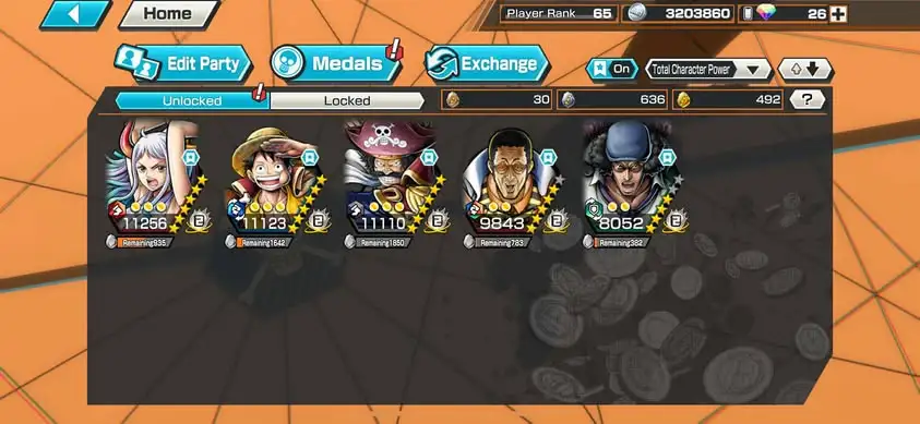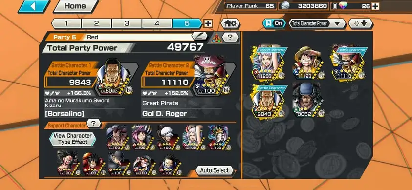 [3326][IOS+ANDROID] 5 EX / HB 52 / Roger Dark + Kizaru + Yamato + Kuzan + Luffy Blue , Support 166% , Good Medal