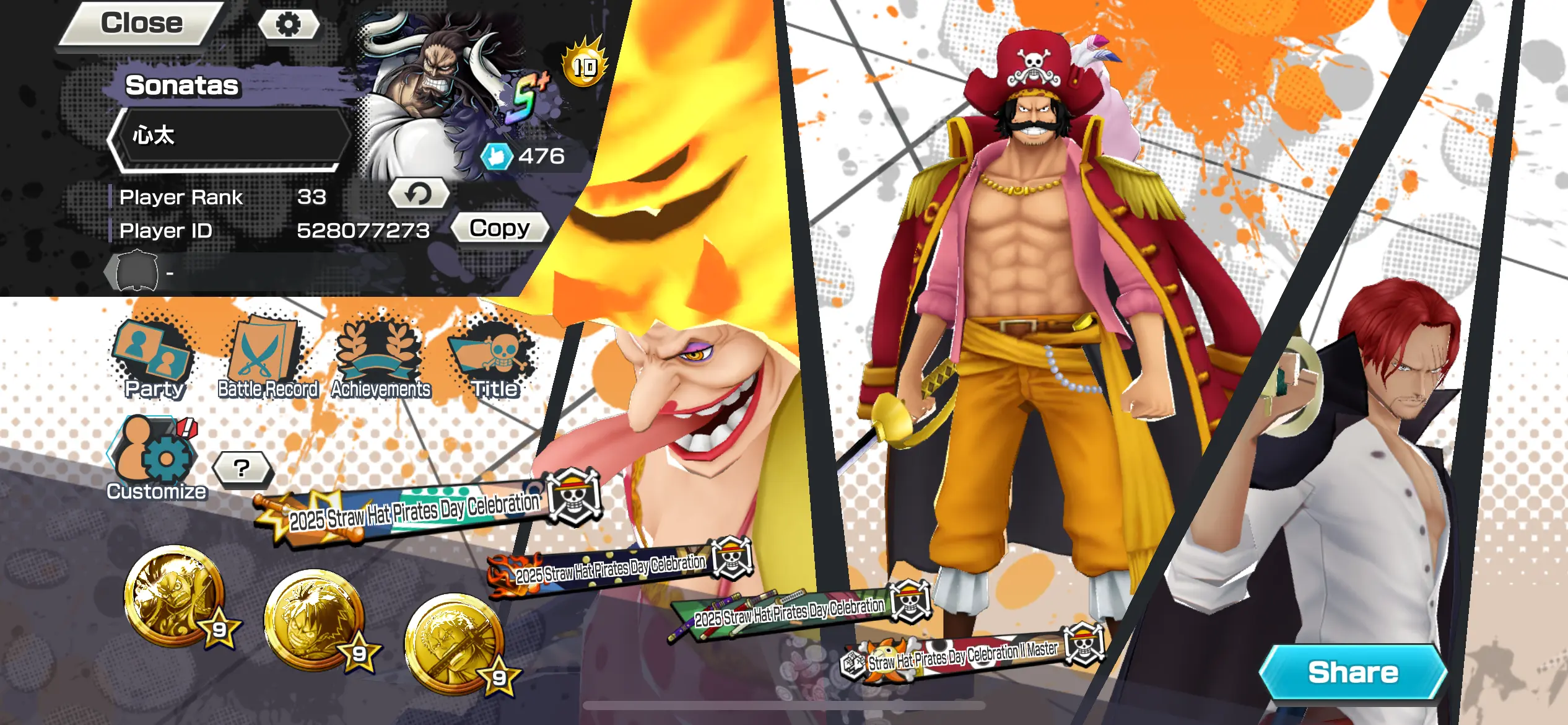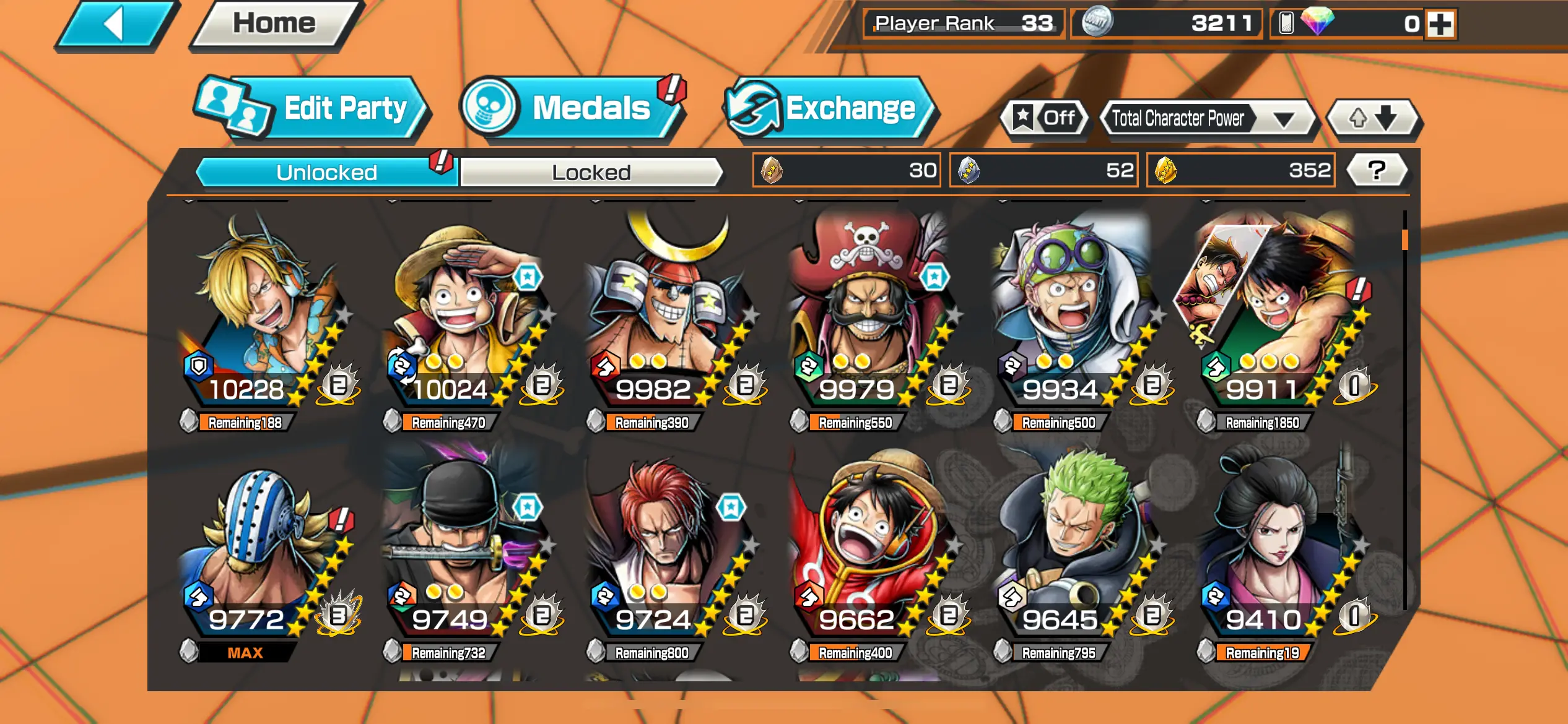 B188🔥HB10🔥8 Ex Meta 2 Max🔥Garp Max🔥Akainu Max🔥Luffy🔥Kaido🔥Roger🔥Oni Zoro🔥Shanks🔥Bigmom🔥Support 145🤝Good Medal🎖️Many Medal Material🥇iOS & Android