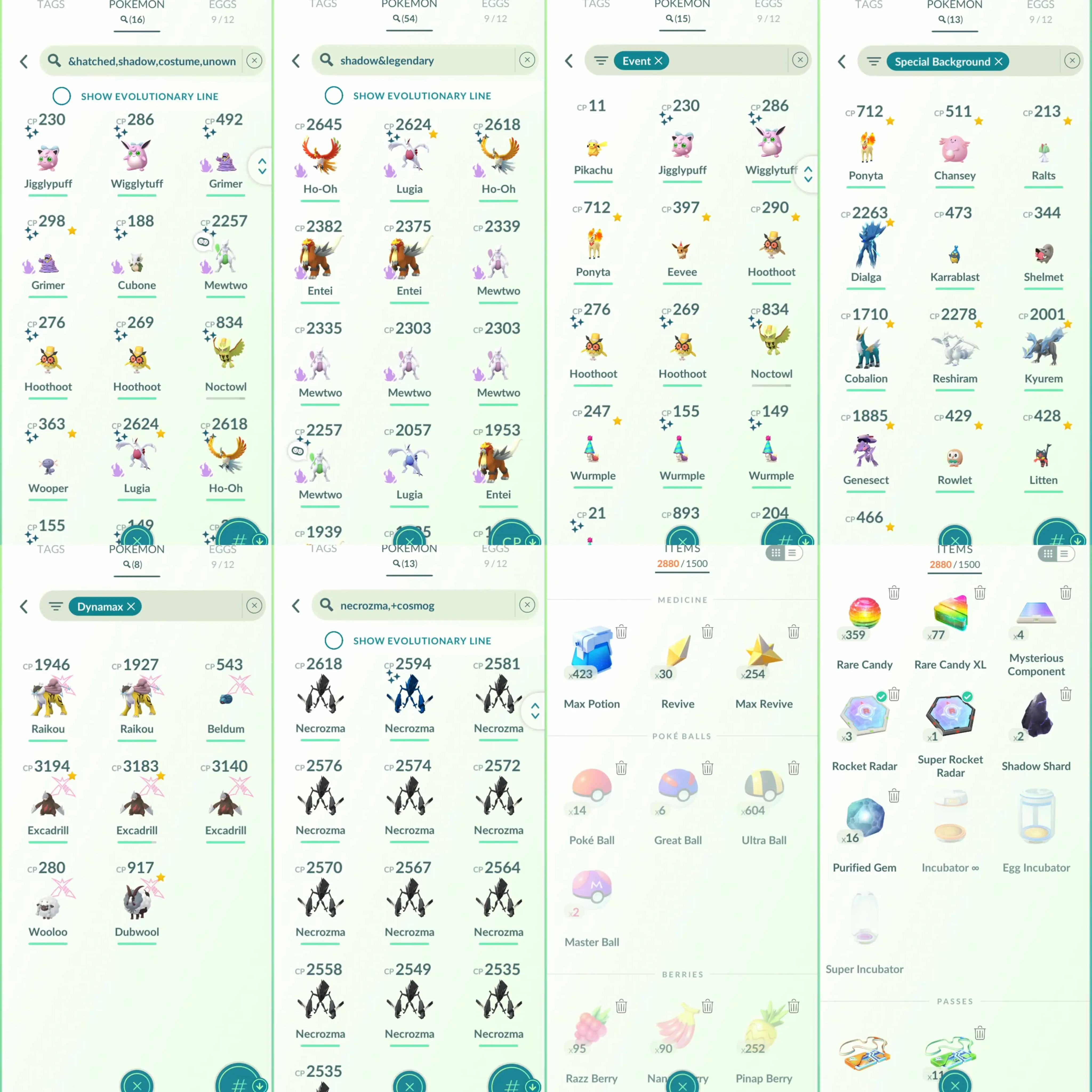 Shiny: kyogre, zacian, zamazenta, giratina, xerneas, genesect, regice,
