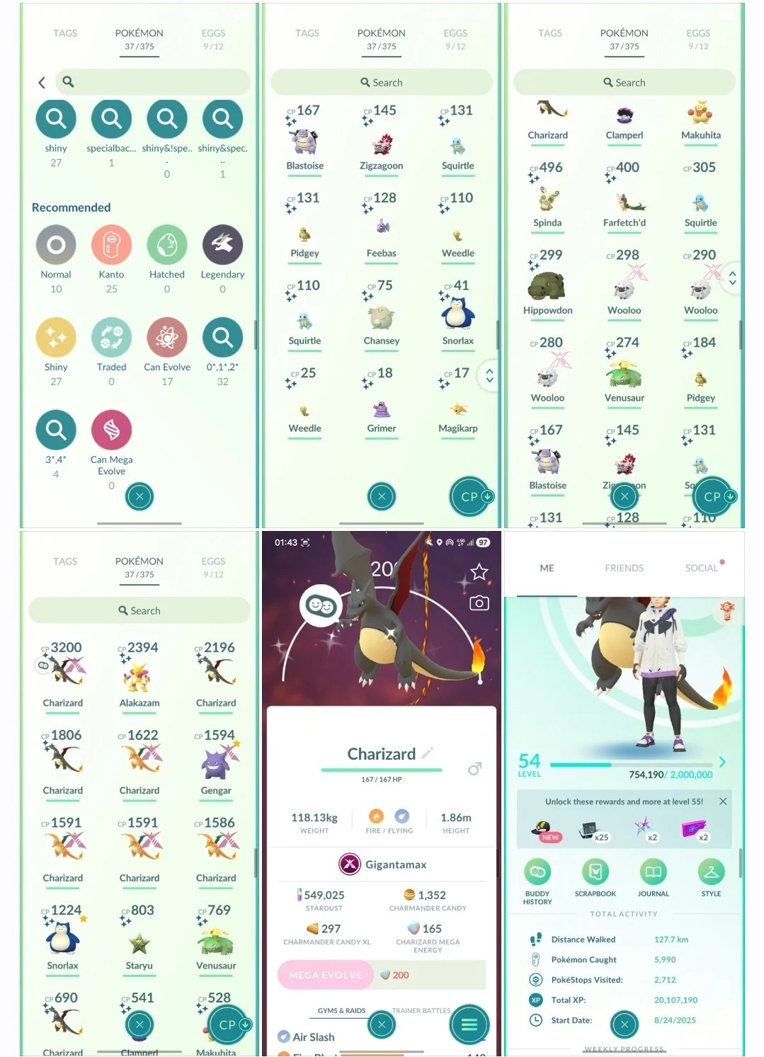 ACCOUNT PTC LEVEL 54 HAVE 600K STARTDUST HAVE SHINY GIGANTAMAX CHARIZARD BACKGROUND MAX LEVEL 50 3 MOVE HAVE SOME 20-30 SHINY POKEMON INCLUDING CHAMANDER USE FOR TRADE + LUCKYTRINKET