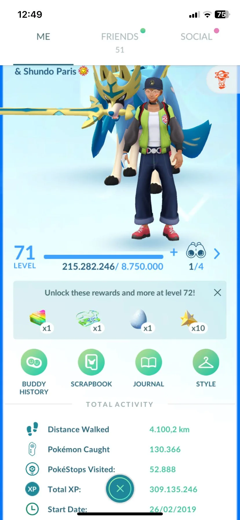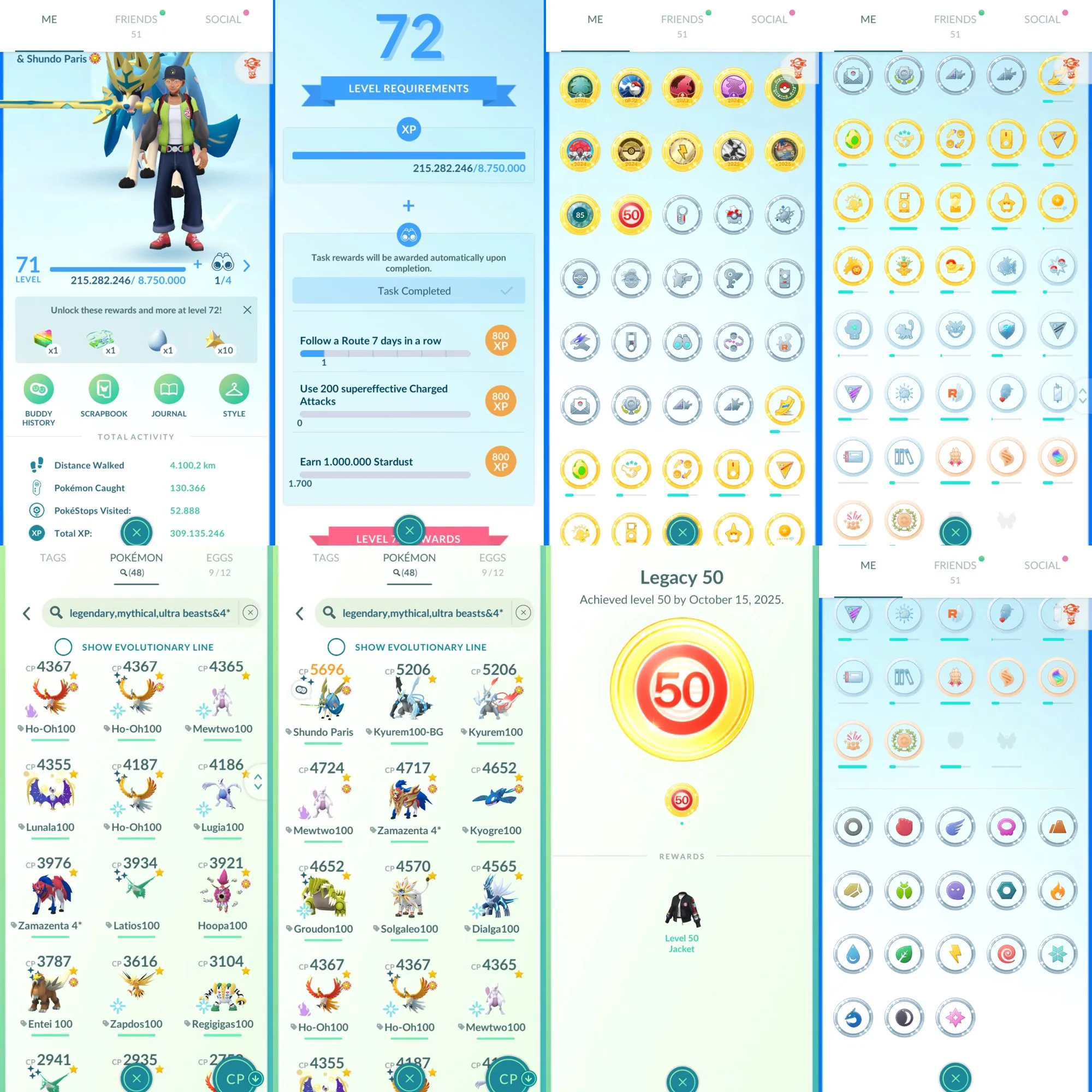 Level 71+-49 legend iv100-Shundo Zacian Paris-Hundo shadow Mewtwo+Ho-Oh-35 Medal plantium-191m+ Stardust-728 legend-465 shiny-401 Hundo-309m+ XP