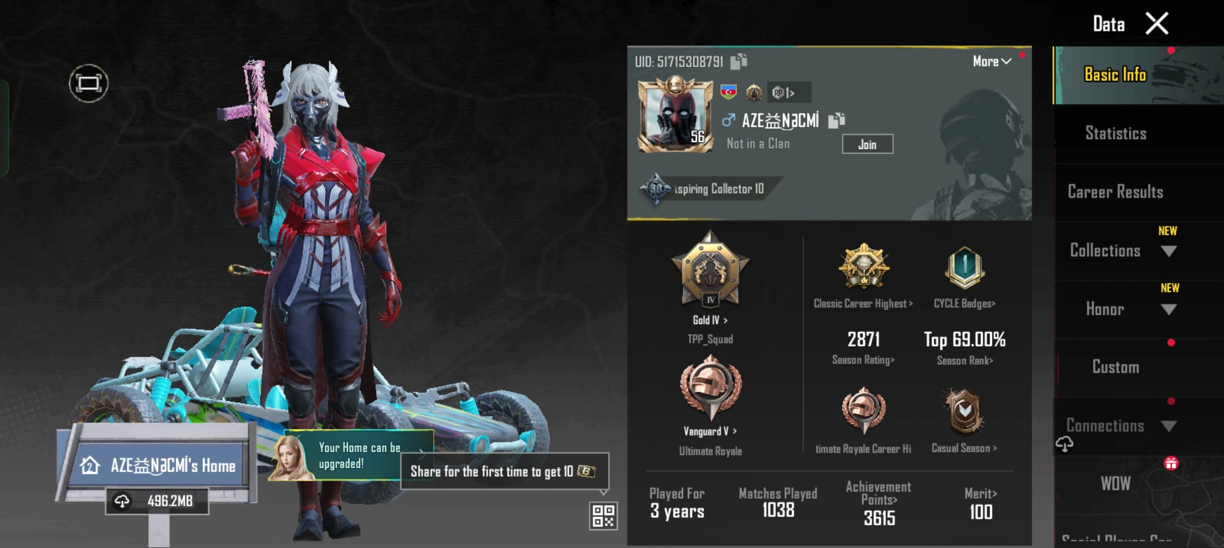#G129|Lvl 56|ID CARD|4 TITLE OVERACHIEVER|RP A67 MAX|46 SET(5 MYTHIC)|36 WEAPON(2 LAB)|LILAC THOMPSON LVL 2|GLADIATOR BIZON LVL 1|5 VEHICLE||GOLD EURO