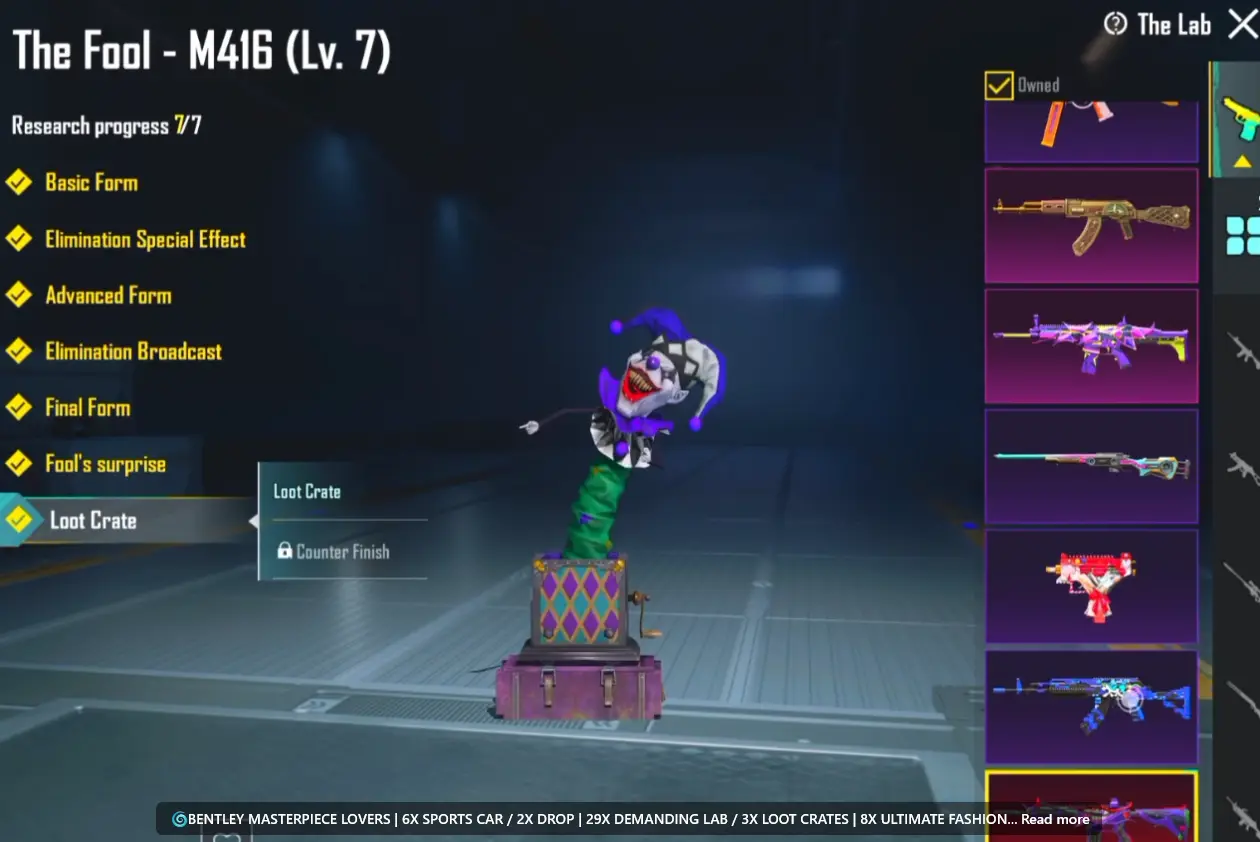🔫M416 FOOL LVL 7 👕FOOL SET+MASK & BAG 💫S4 FACES+ S4 HAIRS & PONY TAIL 🌀BENTLEY MASTERPIECE LOVERS | 🚗6X SPORTS CAR | ✨ 29X DEMANDING LAB | 8X ULTIMATE FASHION🌀