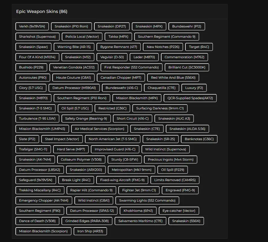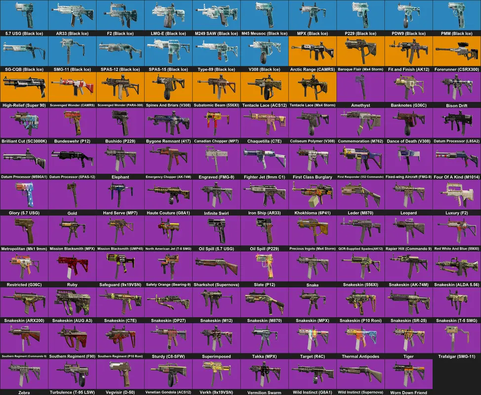 【PC/PSN/XBOX】236 Skins | 16 Black Ice | 7 Seasonals | 5 ProLeague | 10 Universals | 192 LVL