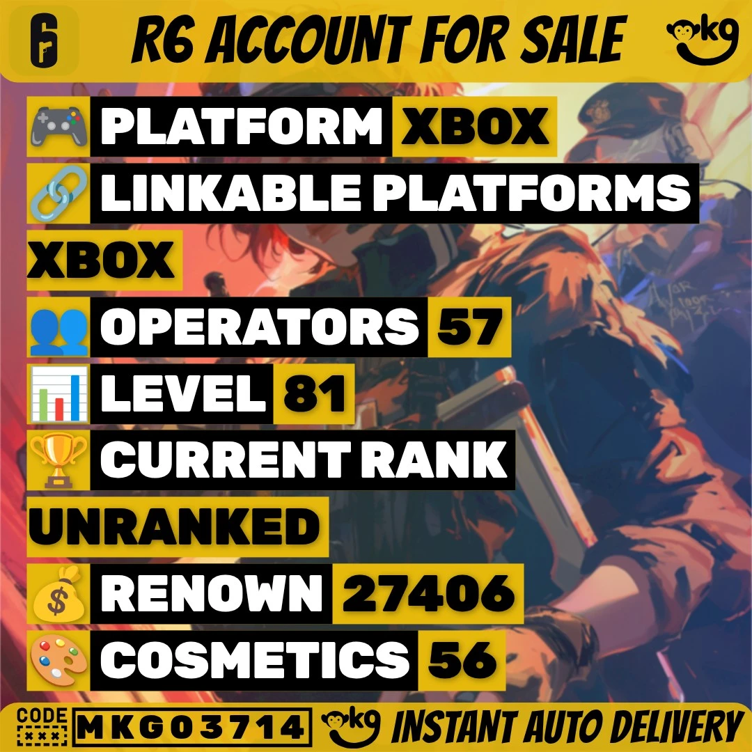 🚀 【 XBOX 】 Level 81 ✅ 2 BLACK ICE + 54 SKINS + Unranked ✅ 57 OPERATORS + 💰 27,406 Renown + ⚡ Ready Ranked + 🔓 Full Access !MKG03714