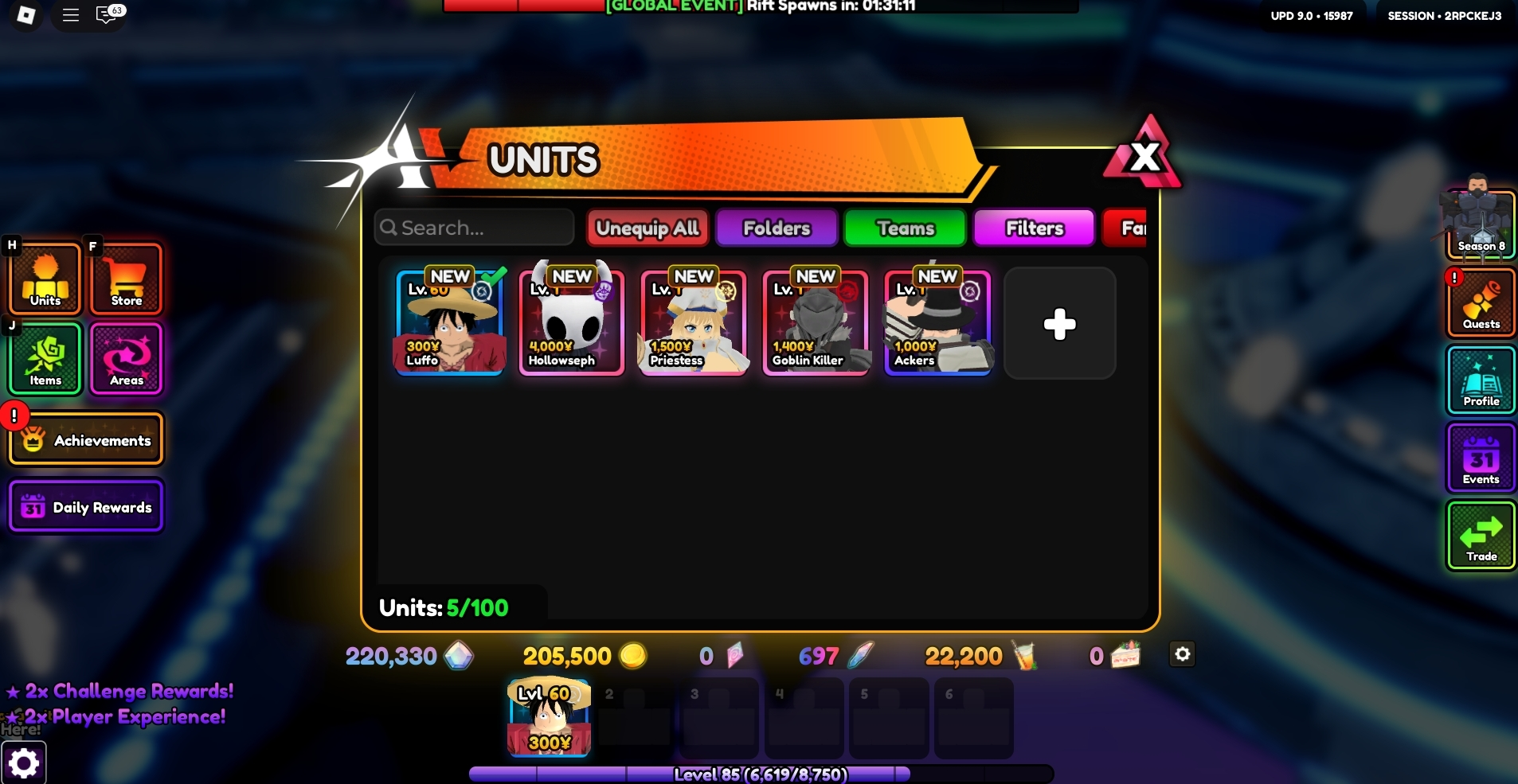 Anime Vanguards ⸱ 85 LV ⸱ 220 K Gems ⸱ 697 Trait Rolls ⸱ Hollowseph ⸱ Priestess ⸱ Goblin Killer / 🔥 Ackers INSTANT DELIVERY #13