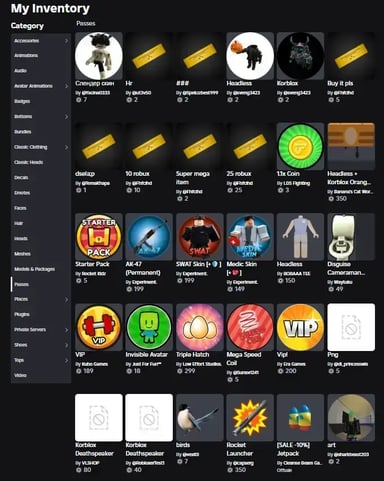 Достъпни акаунти в Roblox с много Robux и редки предмети.