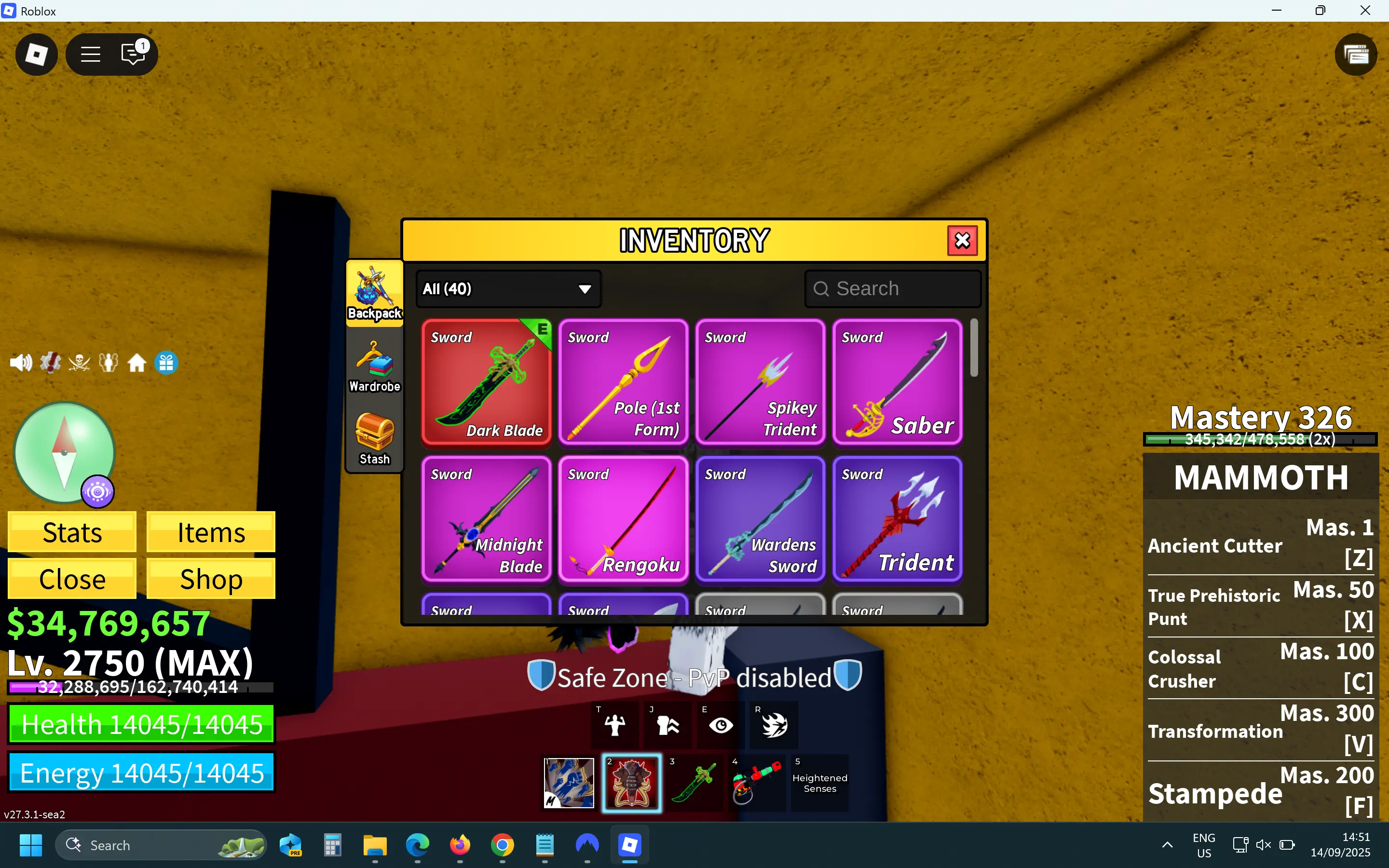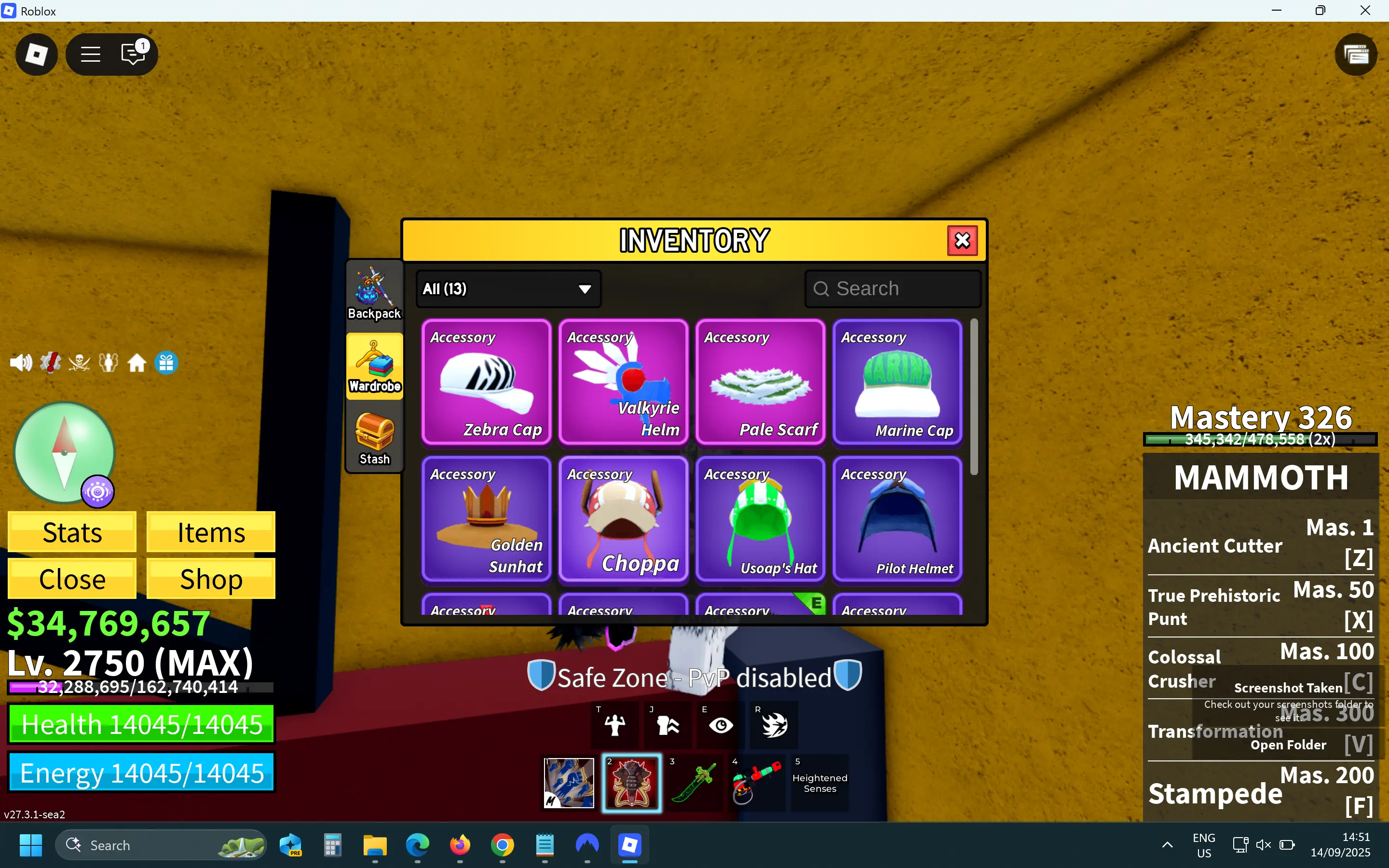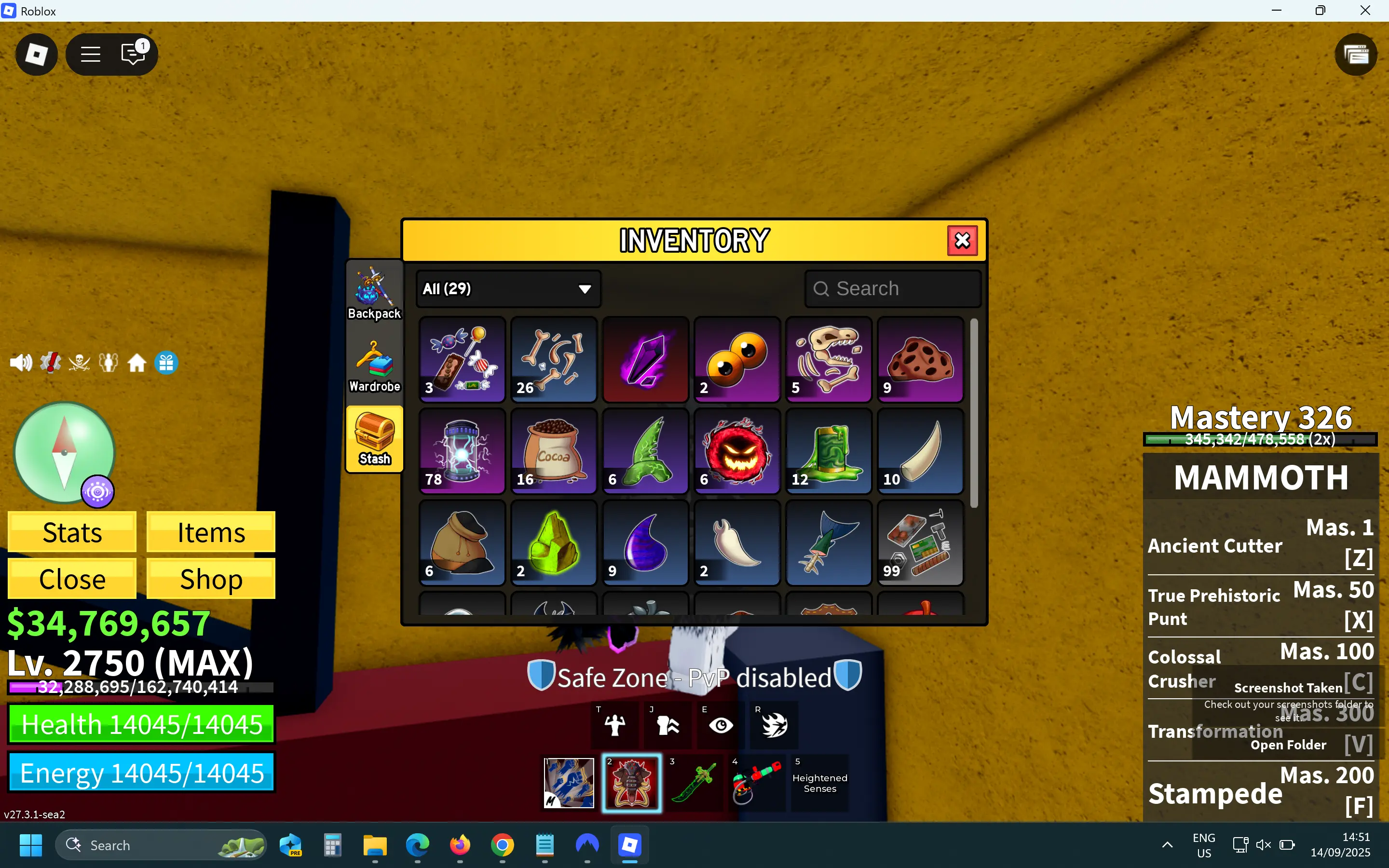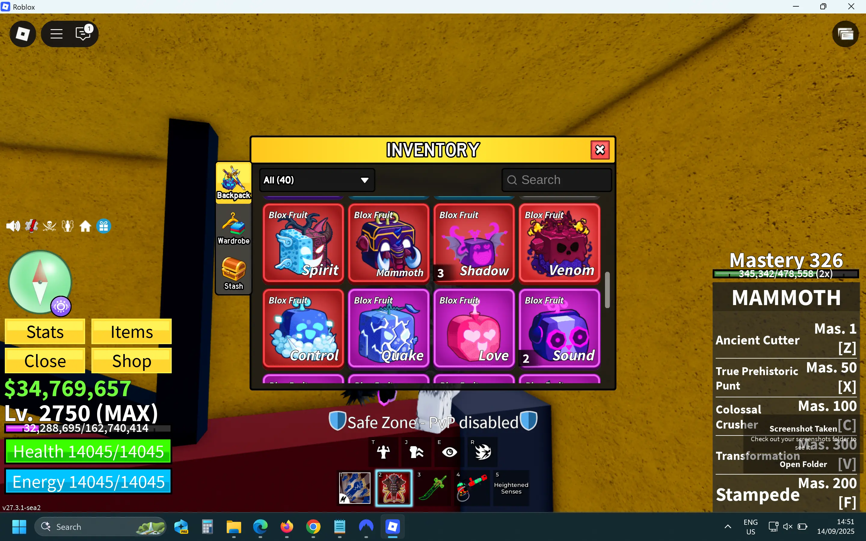[Instant] Lv2750 / Permanent Buddha / Fruit Notifier, Dark Blade, Acidum Rifle, Valkyrie Helm / Godhuman / Equip: Mammoth / INV: Spirit, Mammoth, Shadow, Venom, Control / V3 Race ⸱ Blox Fruit | OFFSALE