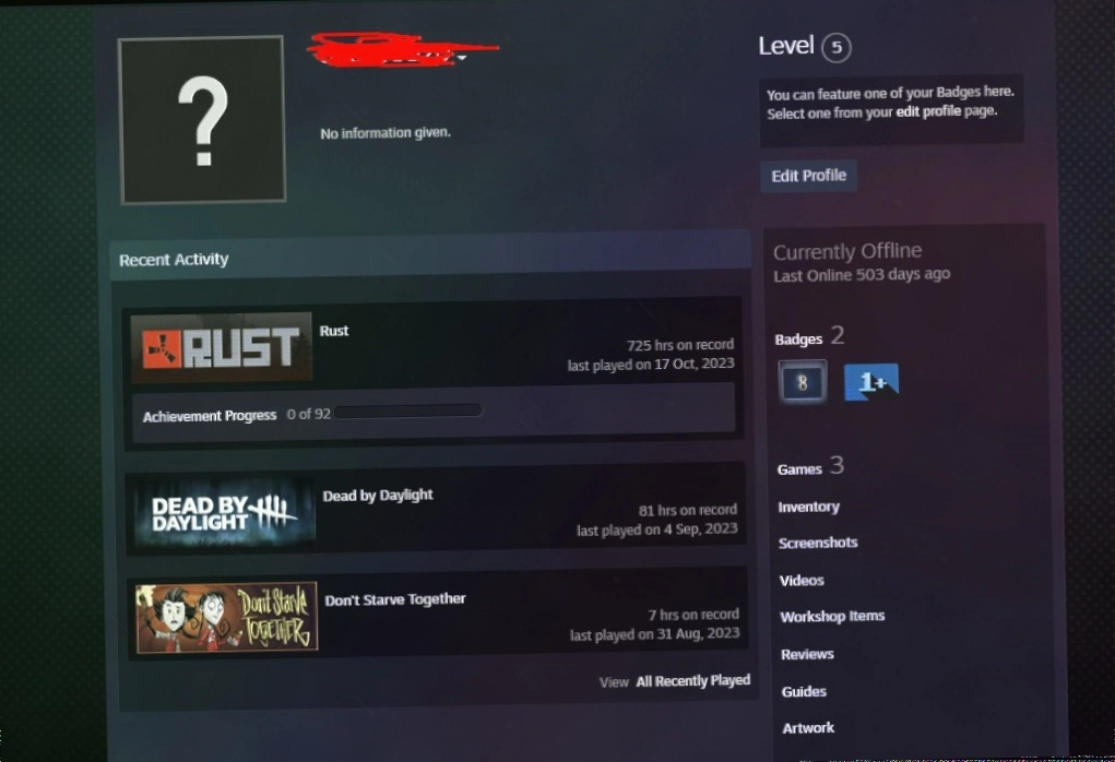 8 Years old Steam+5 LVL+RUST with 700+ AFK HOURS+Don't Starve Together Game+Full Access+Instant Delivery 24/7 #ITEM-167137