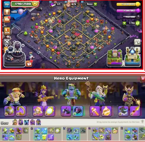 RAREST DEAL🤯31 MAX EQUIPMENTS✨️[10 EPIC EQUIPMENTS MAXED]😱TH17 1000% MAXED OUT🐲42 PREMIUM HERO SKINS🔥1790 CWL LEAUGE MEDALS STACKED🌟INSTANT DELIVERY