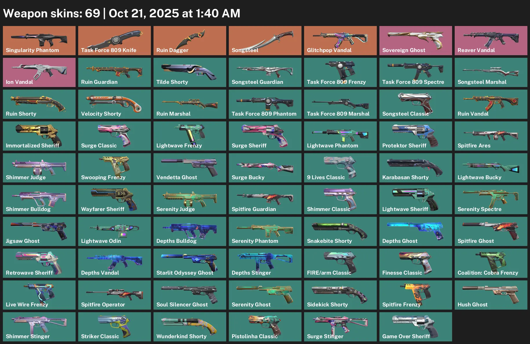 AP | 69 Skins | exp SILVER 1 | Ruin Dagger | Glitchpop Vandal | Reaver Vandal | Ion Vandal | Ruin Vandal | Singularity Phantom | Sovereign Ghost | S4G