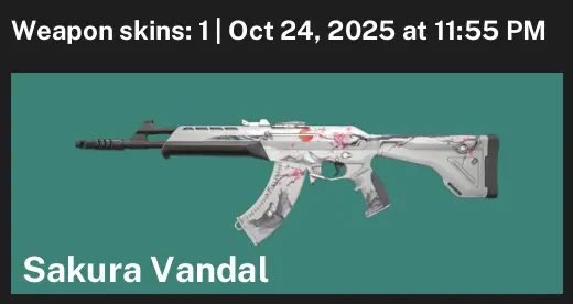 💪 AP 📍 Unranked 🐈 1 Skins 🐧 75 VP 🏉 6 Agents 🛻 Value: 1275 VP 🚍 Sakura Vandal