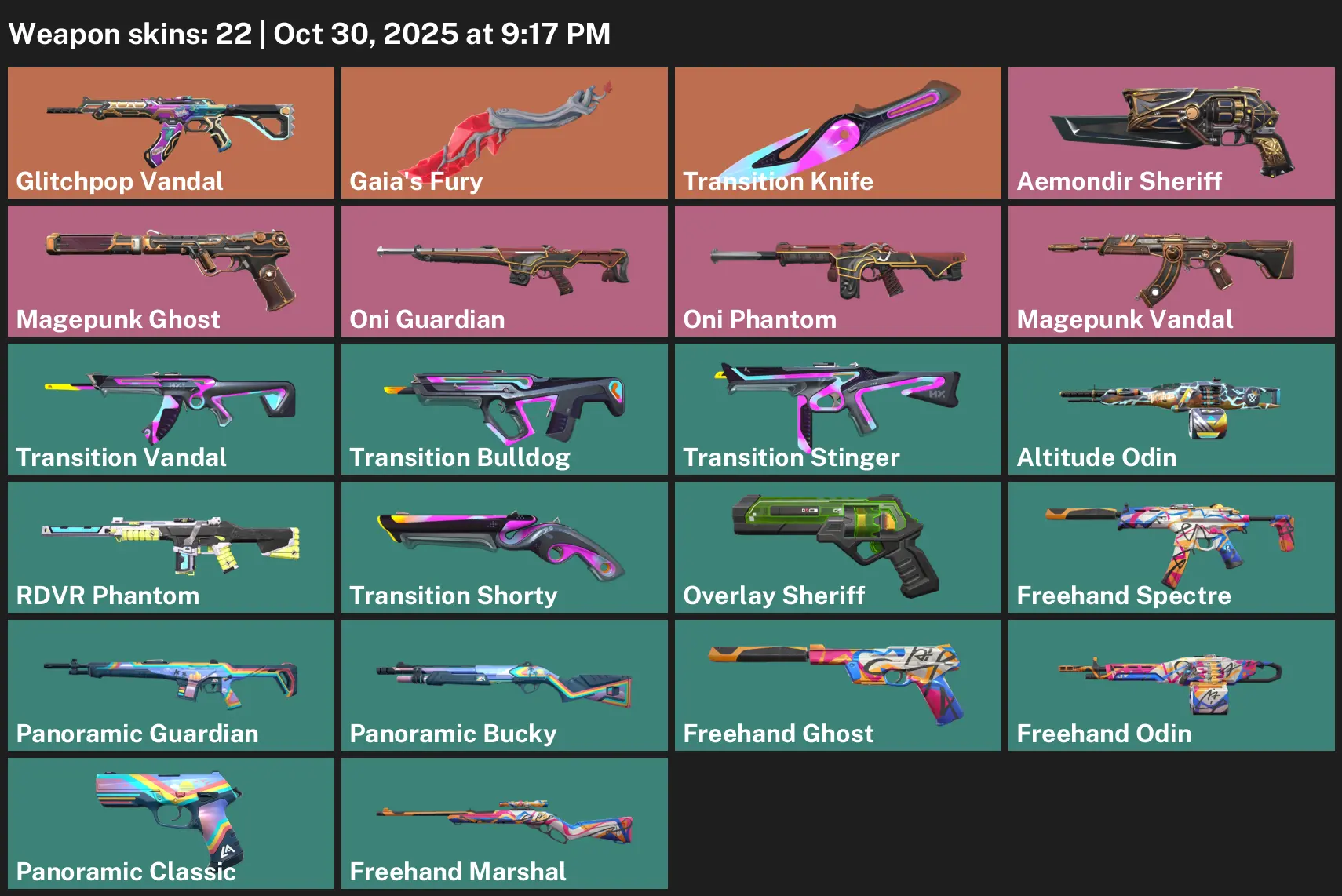 EU | 22 Skins | exp BRONZE 2 | Gaia's Fury | Glitchpop Vandal | Magepunk Vandal | Oni Phantom | Magepunk Ghost | #BDD4192 | #MBFN