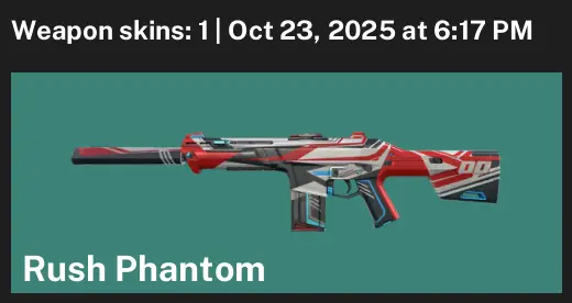 🤮 NA 👔 Unranked 🔩 1 Skins 🧮 0 VP ☹️ 0 Agents 🥏 Value: 875 VP 🐙 Rush Phantom