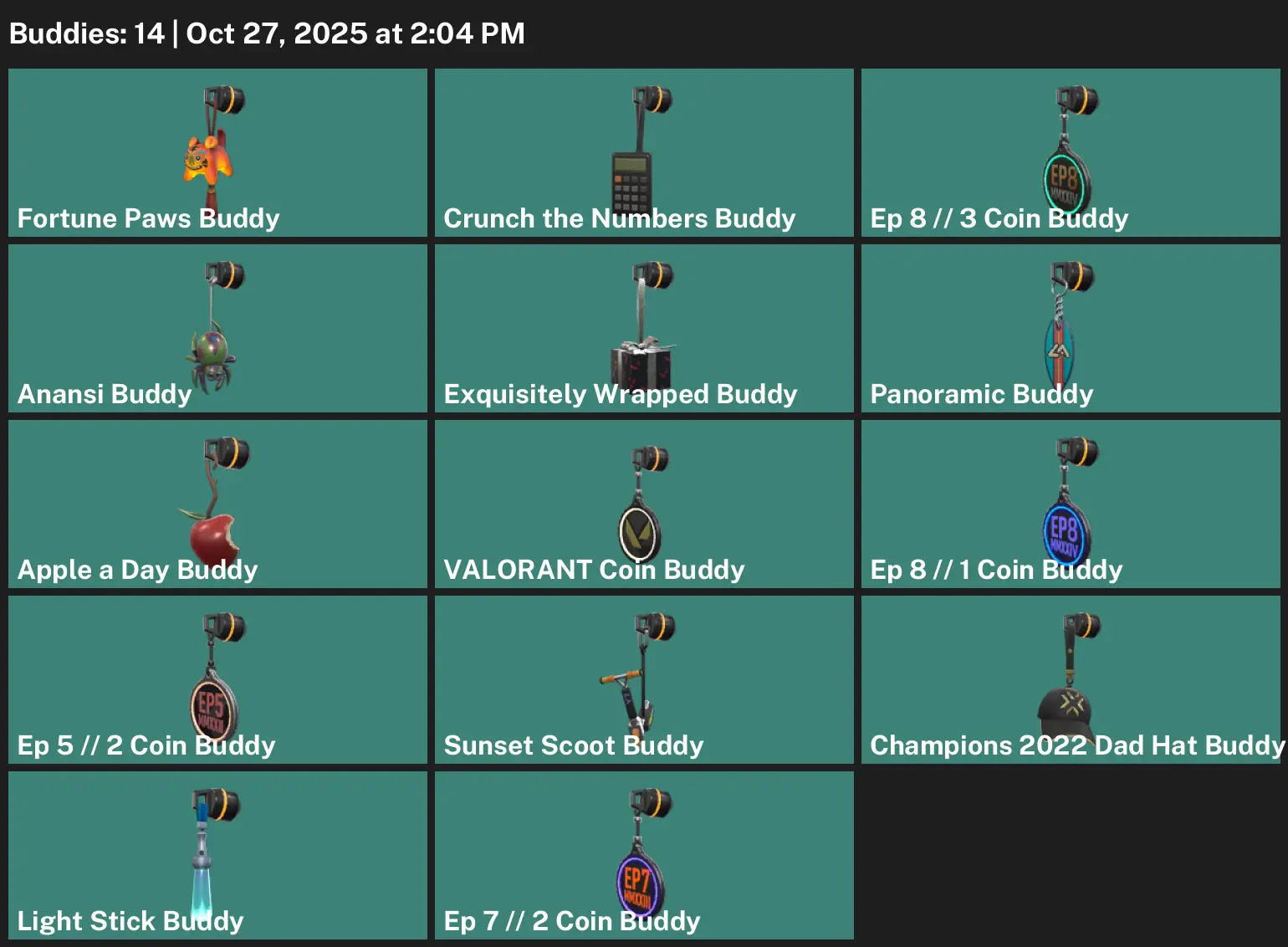 🐏 NA 🥨 Unranked 🐭 13 Skins 🔫 200 VP 🦓 5 Agents 🩸 Value: 4725 VP 🐄 Imperium Vandal ✍️ Hu Else 🚧 Piedra del Sol Bucky ⛱ Transition Stinger 🫢 Piedra del Sol Ghost 🗓 Freehand Spectre