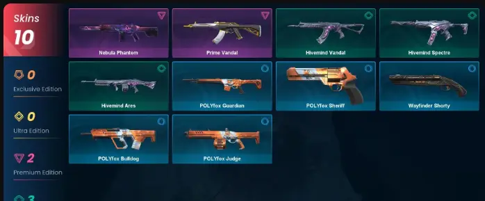 NA / Valorant / Prime Vandal / Nebula Phantom / 10 Skins	mssh904