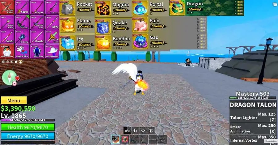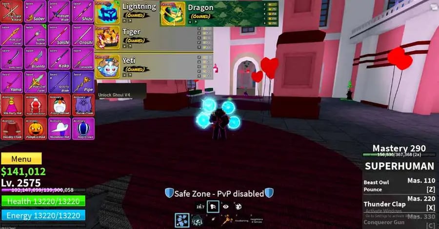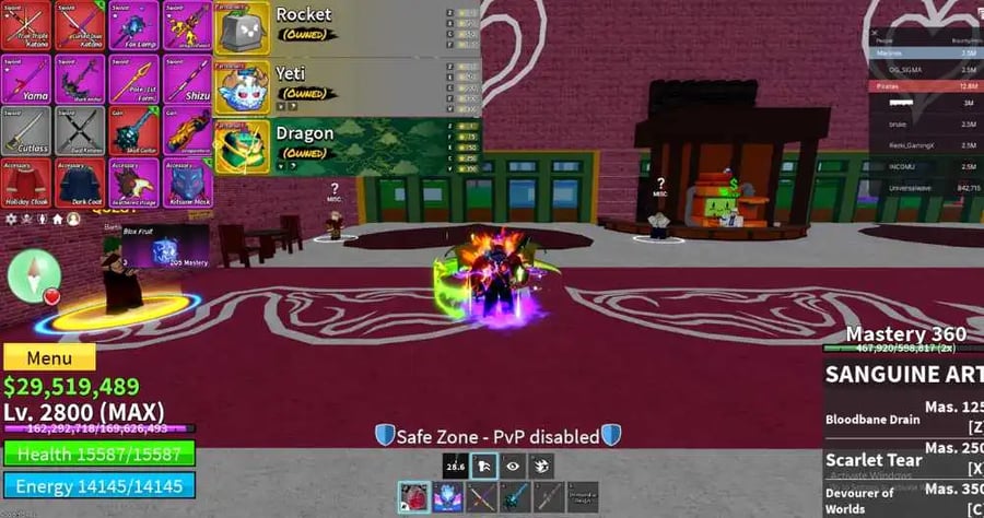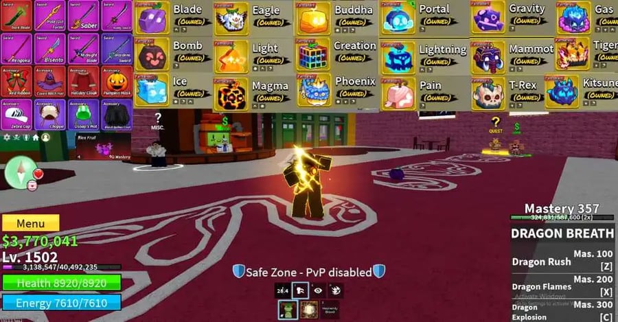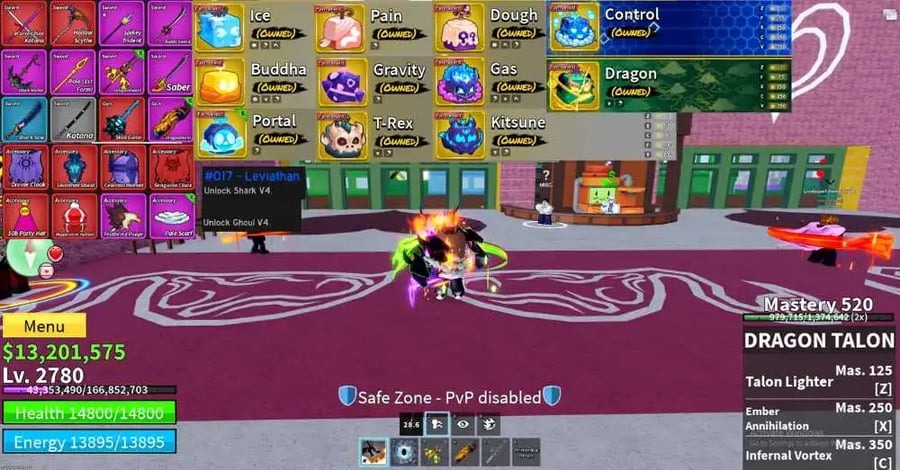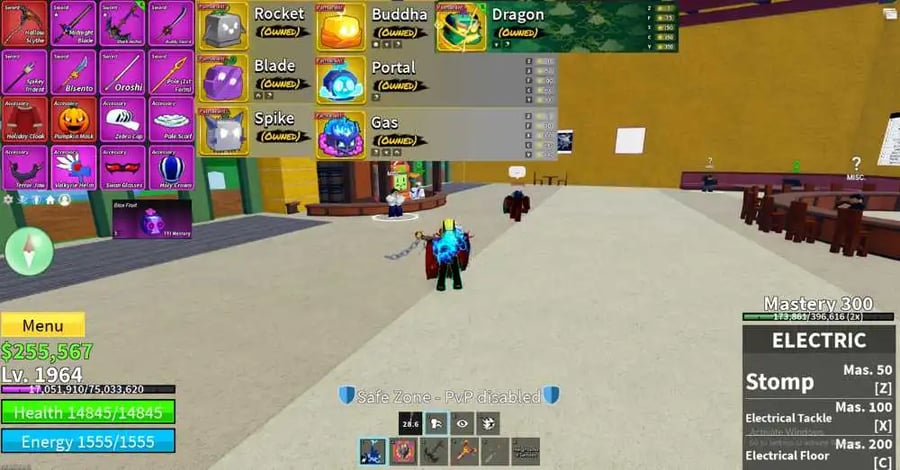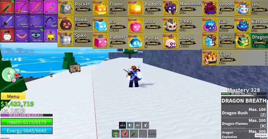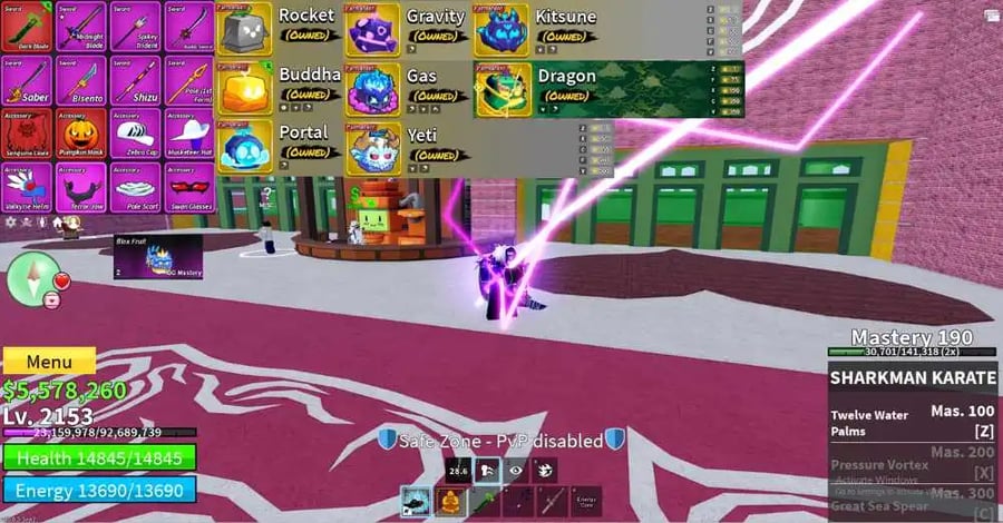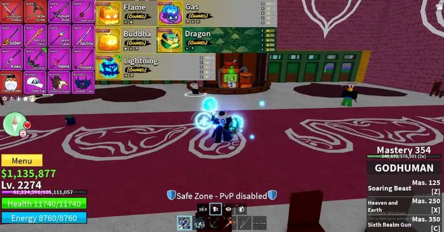 [Exc BF + SAB] ⸱ 12 Perm Used (Kitsune,Tiger,Gas,Venom,Lightning) V3 Shark Storage: 2 (Fruit Notifier,Dark Blade) GOD Human Lv 2701 SB170632