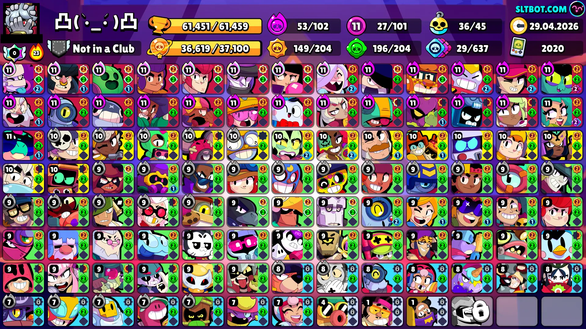 11.11 PIN ⭐ 284 SKINS ⭐ 61.500 TROPHY ⭐ 101 BRAWLERS ⭐ 25 HYPERCHARGED ⭐ 27 MAXED BRAWLERS ⭐ 12 PRESTIGE ⭐ 35 BUFFIES ⭐ CESAR SAM ⭐ DARK LORD SPIKE ⭐ CRASH TEST DARRYL ⭐ CUPID PIPER ⭐ IMPIE COLETTE ⭐ LEGENDARY ⭐ 60K