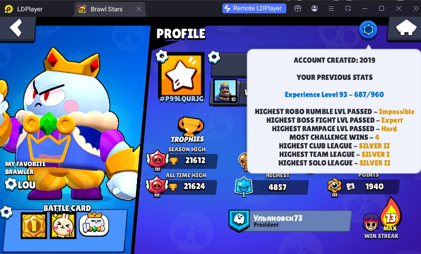 115 SKINS 💯 KING LOU ❤️ 21.612 CUPS 🏆 65 BRAWLERS 🐼 3 HYPERCHARGED 🩸 3 MAX BRAWLERS 💛 CRASH TEST DARRYL ❤️ GOLD NEKO BEA ❤️ REINBEAR NITA ❤️ SPIKY EVE ❤️ SHIBA NITA 💯