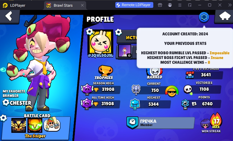 138 SKINS 💯 31.899 CUPS 🏆 77 BRAWLERS 🐼 11 HYPERCHARGED 🩸 15 MAX BRAWLERS 💛 CHEERLEADER ROSA ❤️ FLAG BEARER PIPER ❤️ LOKI CHESTER ❤️ MOON GUARDIAN CHESTER ❤️ MOTHRA EVE  💯