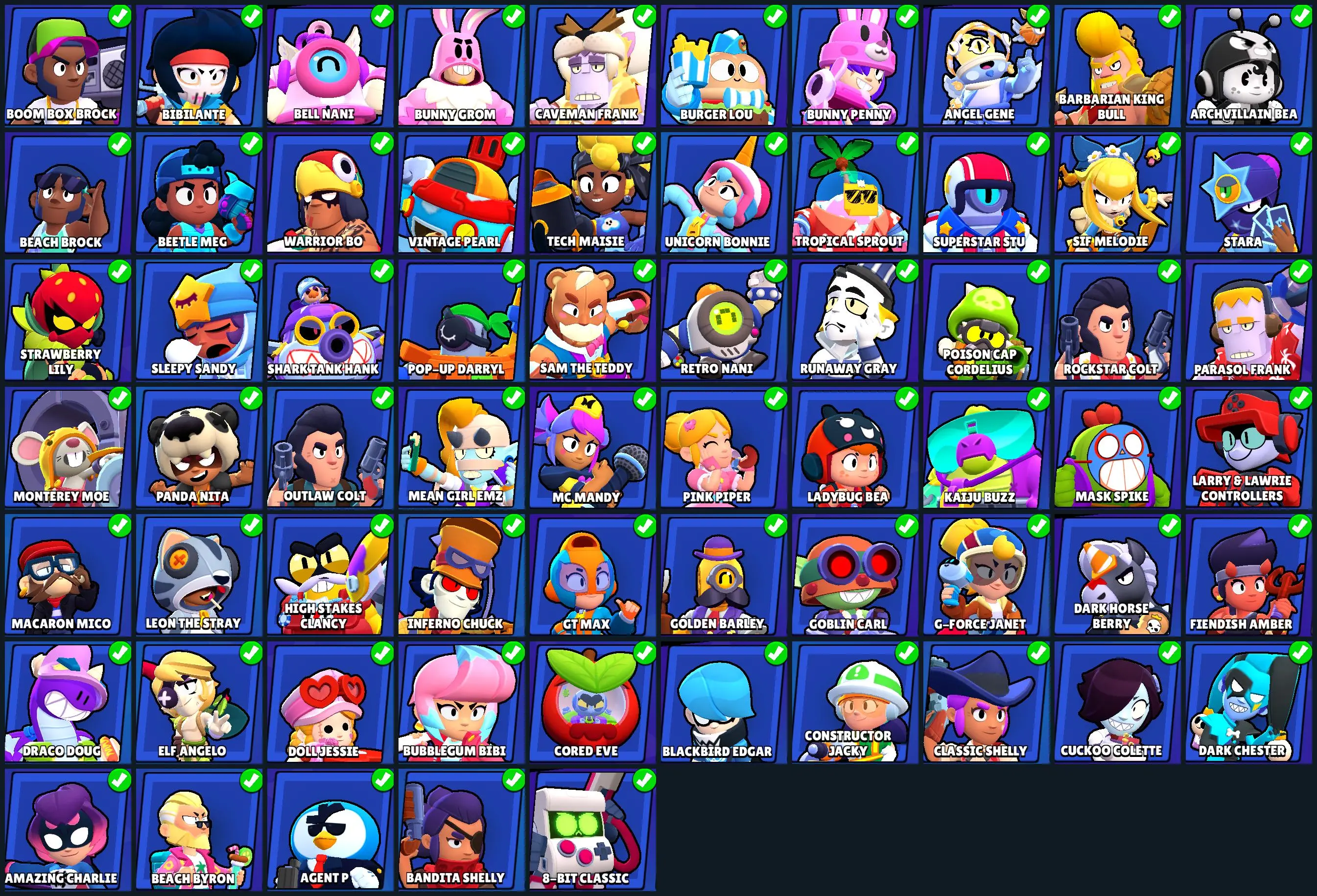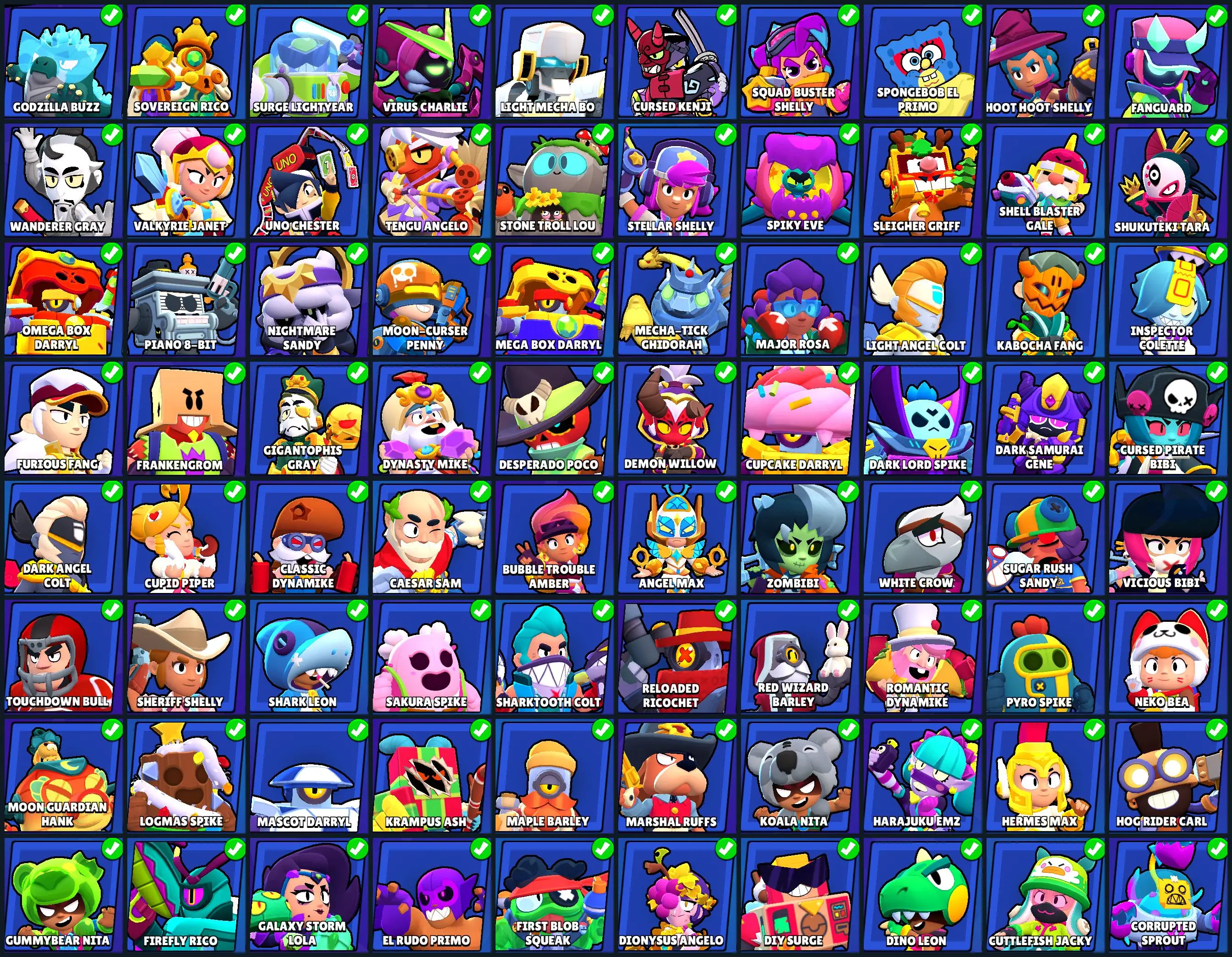 157 SKINS | 39642 TROPHIES | HOOT HOOT SHELLY | HERMES MAX | GODZILLA BUZZ | VIRUS CHARLIE | DARK LORD SPIKE | SURGE LIGHTYEAR | MAJOR ROSA | SPONGEBOB EL PRIMO | DARK SAMURAI GENE | WARRIOR BO | PIANO 8-BIT | CUPID PIPER | 90 BRAWLERS