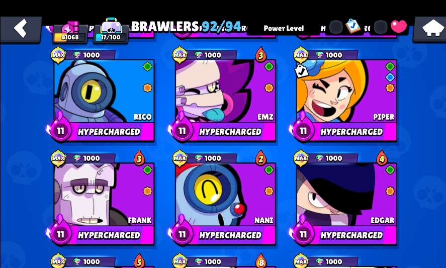 174 SKINS ⭐ 81.100 TROPHY ⭐ 92 BRAWLERS ⭐ 45 MAX ⭐ 34 HYPERCHARGED ⭐ TRICY JANET ⭐ GUARD RICO ⭐ CESAR SAM ⭐ KONG SURGE ⭐ OCTO FANG ⭐ SPIKE ⭐ LEGENDARY ⭐ LEON
