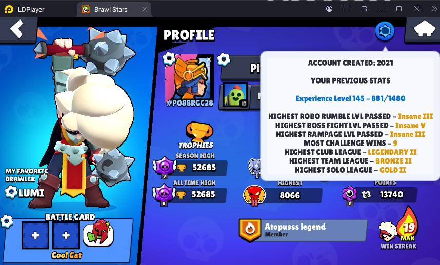 188 SKINS 💯 PIN MANTCHERINO 💜 52.678 TROPHIES 🏆 90 BRAWLERS 🐼 19 HYPERCHARGED 🩸 24 MAX BRAWLERS 💛 CURSED KENJI 🧡 WHITE WOLF LEON 🧡 VALKYRIE JANET 🧡 UNO CHESTER 🧡 UNDERWORLD BO 💯