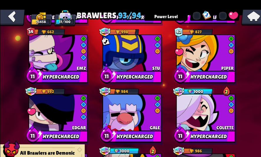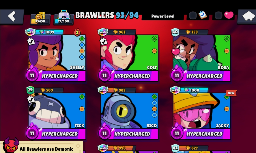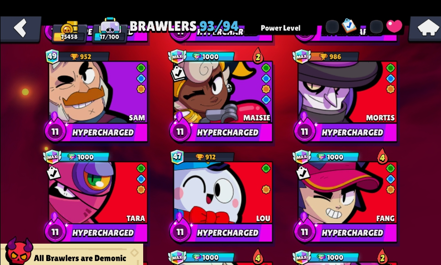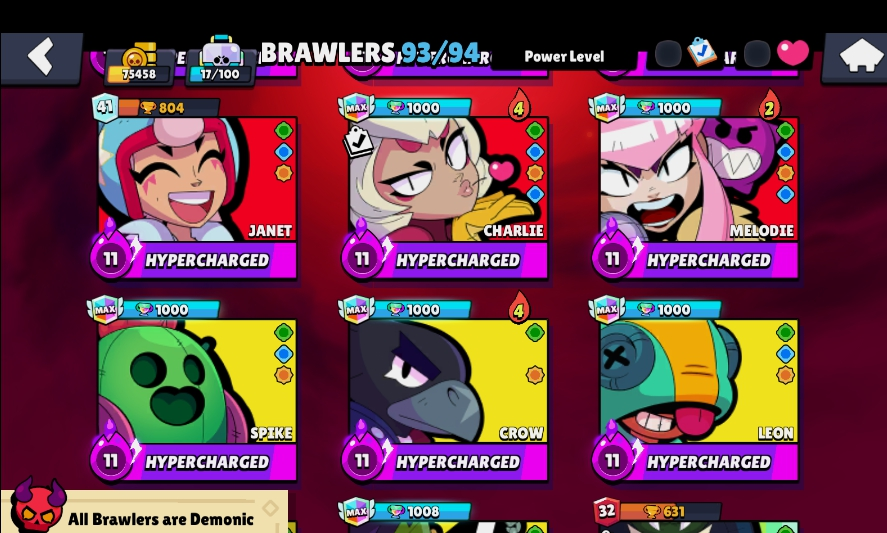 192 SKINS ⭐ 75.500 TROPHY ⭐ 93 BRAWLERS ⭐ 29 MAX ⭐ 27 HYPERCHARGED ⭐ CUPID PIPER ⭐ SPACE OX BULL ⭐ CURSED KENJI ⭐ KONG SURGE ⭐ FUNGUARD FANG ⭐ SPIKE ⭐ LEGENDARY ⭐ LEON