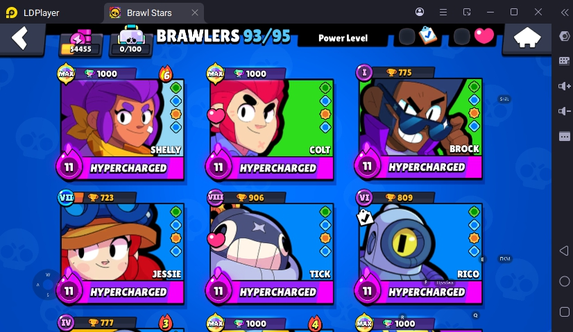 208 SKINS 💯 54.445 TROPHIES 🏆 93 BRAWLERS 🐼 25 HYPERCHARGED 🩸 37 MAX BRAWLERS 💛 ROBO MIKE 🧡 RODEO HANK 🧡 COBRA LOLA 🧡 CROEBONE 🧡 ROBO SPIKE 💯