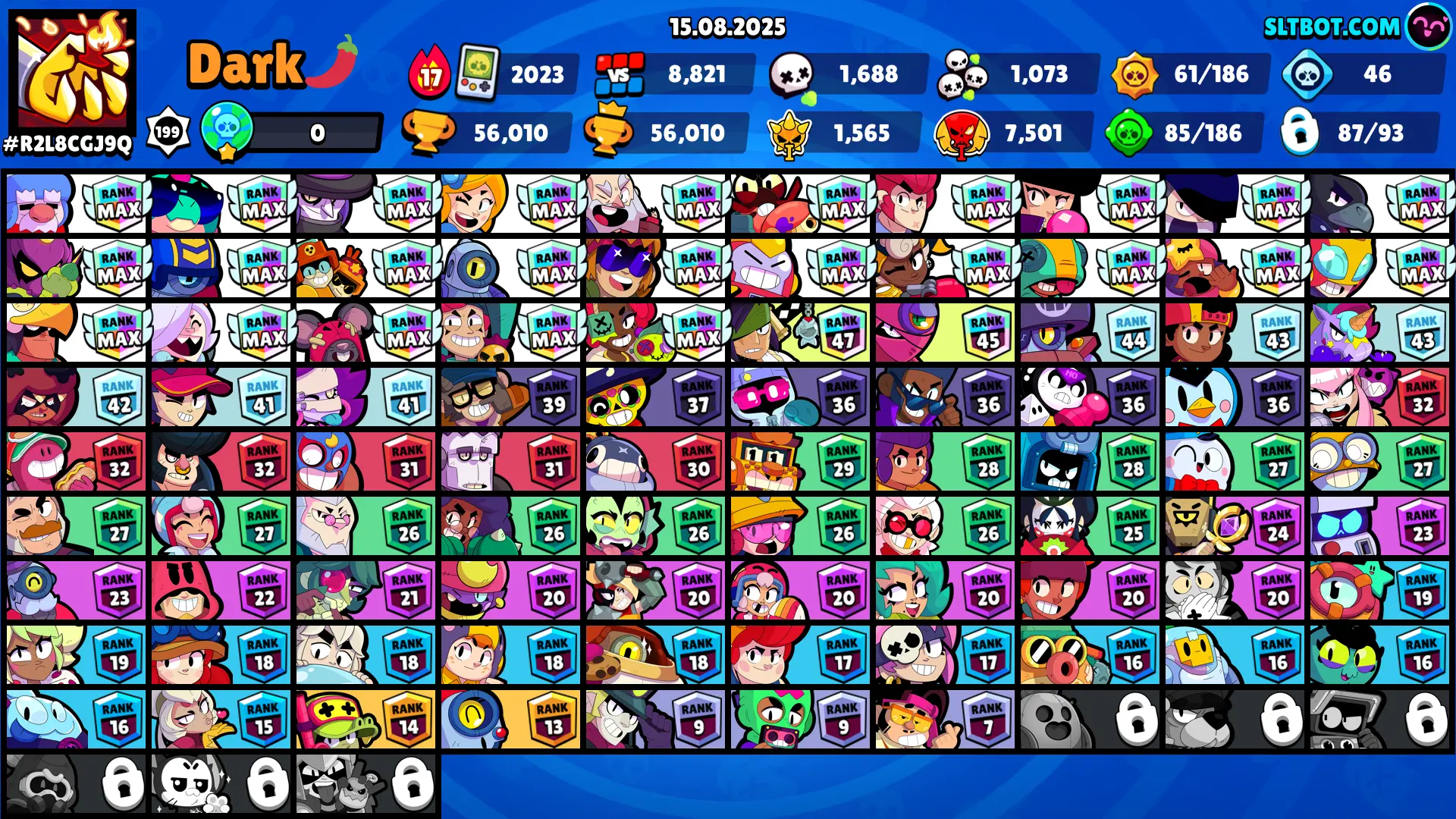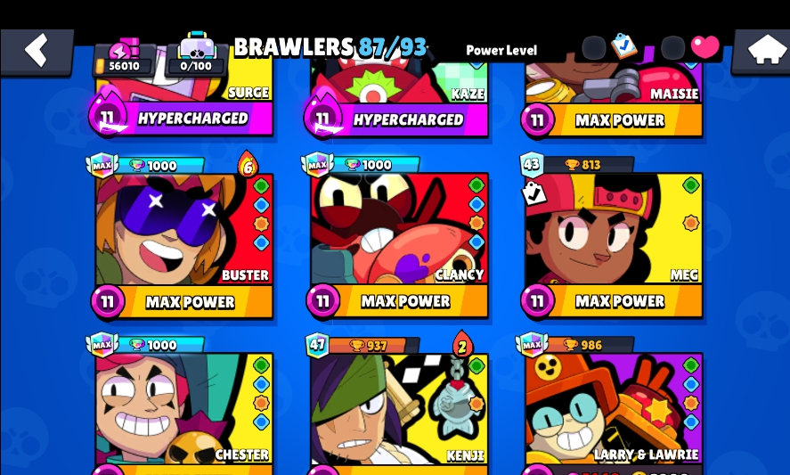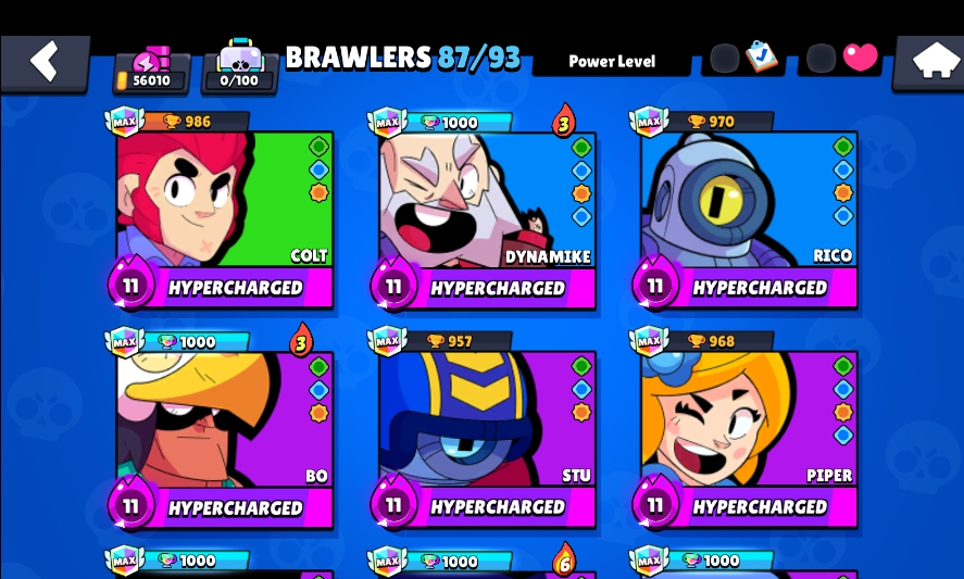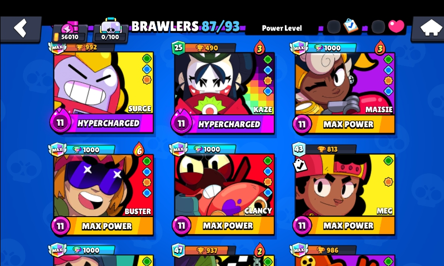217 SKINS ⭐ 56.000 TROPHY ⭐ 87 BRAWLERS ⭐ 26 MAX ⭐ 20 HYPERCHARGED ⭐ LOADED RICO ⭐ CHAINSAW BUSTER ⭐ VALKYRIE JANET ⭐ DIY SURGE ⭐ KABOCHA FANG ⭐ SPIKE ⭐ LEGENDARY ⭐ LEON