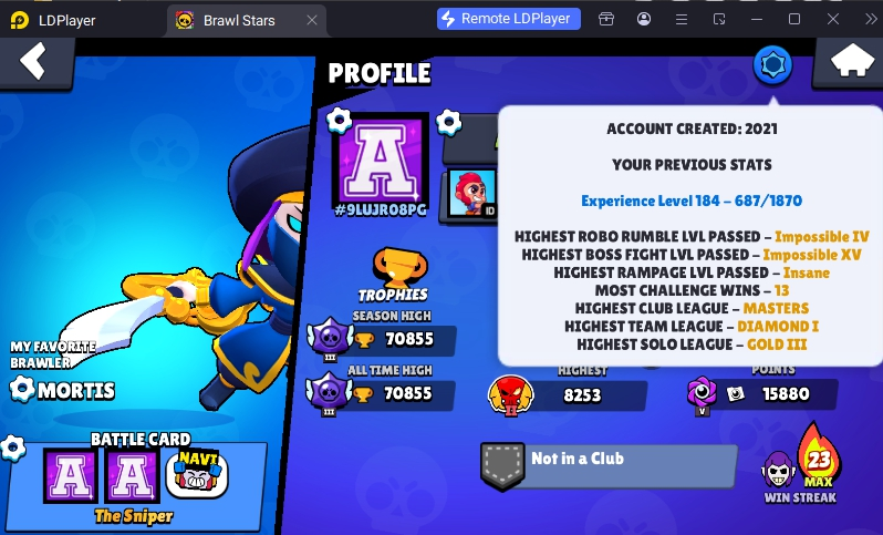 222 SKINS 💯 70.855 CUPS 🏆 93 BRAWLERS 🐼 27 HYPERCHARGED 🩸 36 MAX BRAWLERS 💛 ANTIVIRUS 8-BIT ❤️ BANANAS COLT ❤️ RAGEQUIT TARA ❤️ SANTA STU ❤️ YETI SAM 💯