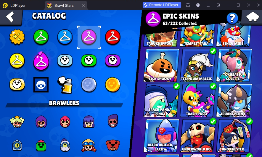 228 SKINS 💯 WHITE WOLF LEON 🧡 44.735 TROPHIES 🏆 94 BRAWLERS 🐼 14 HYPERCHARGED 🩸 20 MAX BRAWLERS 💛 CURSED KENJI 🧡 ANTIVIRUS 8-BIT 🧡 CAPTAIN CARL 🧡 POSTAL BROCK 🧡 TITANIUM MAISIE 💯
