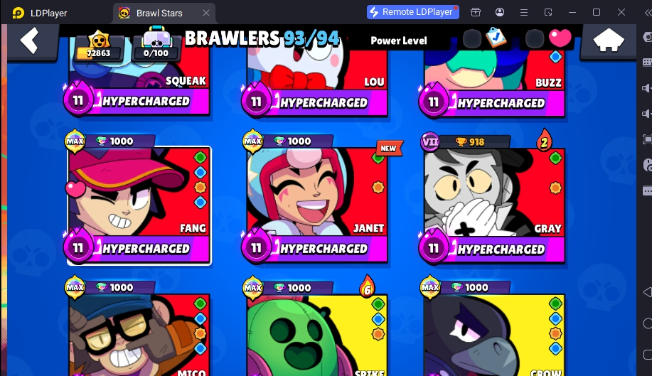 245 SKINS 💯 FURIOUS FANG 🧡 PIN 11.11 🧡 72.863 TROPHIES 🏆 93 BRAWLERS 🐼 28 HYPERCHARGED 🩸 32 MAX BRAWLERS 💛 DEMON MORTIS 🧡 BORN BAD BUZZ 🧡 CAPTAIN CARL 🧡 MAJOR ROSA 🧡 WANDERER GRAY 💯