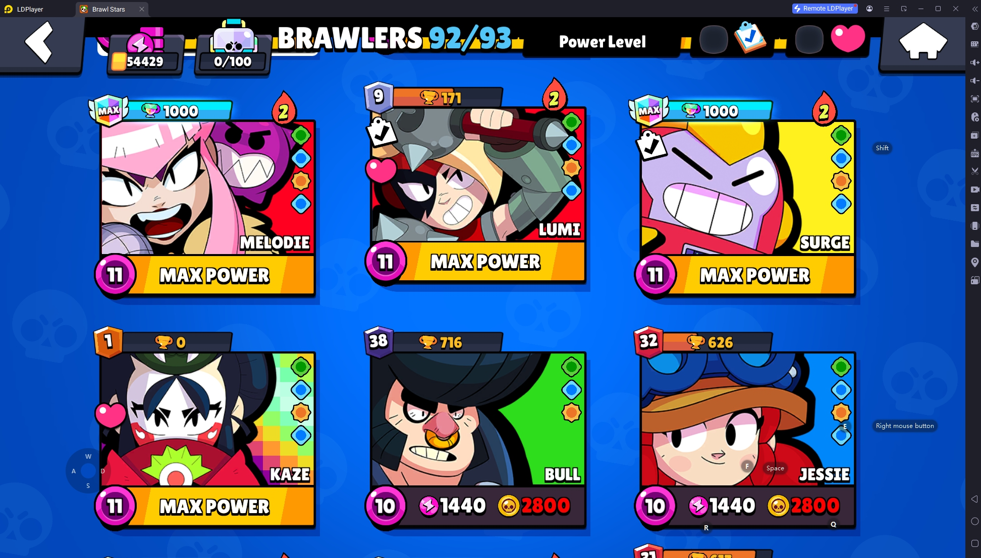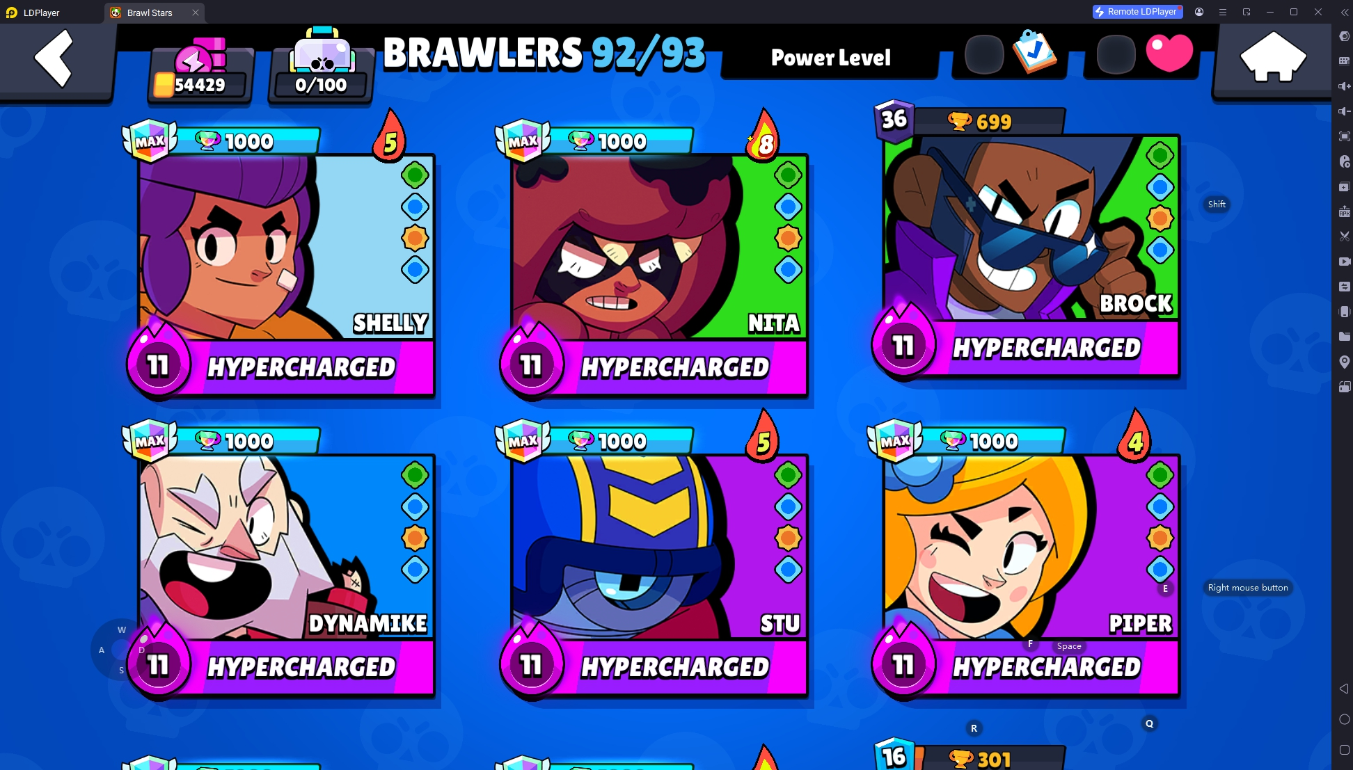 258 SKINS 💯 54.429 CUPS 🏆 92 BRAWLERS 🐼 15 HYPERCHARGED 🩸 21 MAX BRAWLERS 💛 GAMER BIBI ❤️ LUNAR JANET ❤️ INSPECTOR COLETTE ❤️ RADIAN LARRY ❤️ ROBO SPIKE 💯